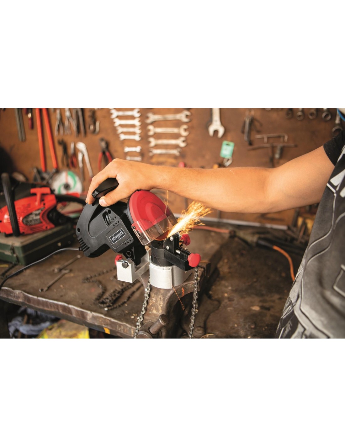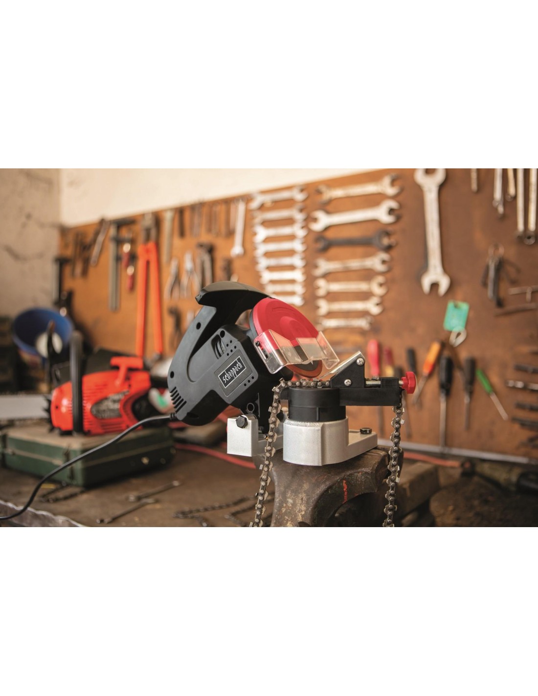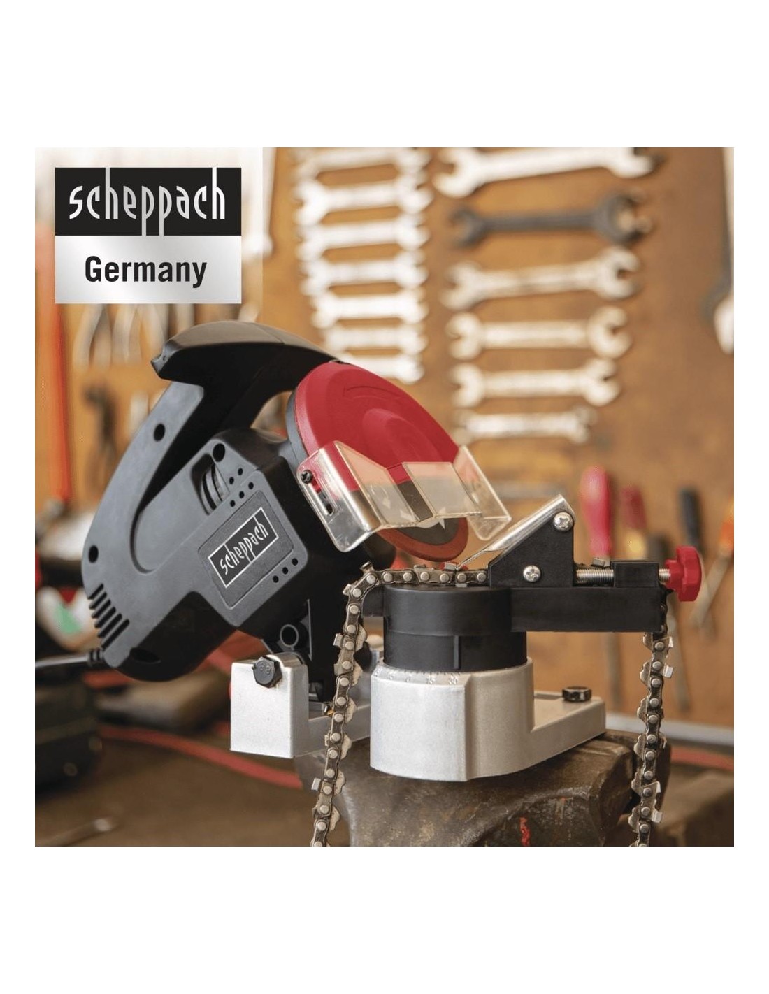 Ecco il nuovo affilacatene Scheppach KS1200, con un potente motore elettrico. Questo affilatore è in grado di affilare tutte le catene più comuni in mercato. Sorprendente!!