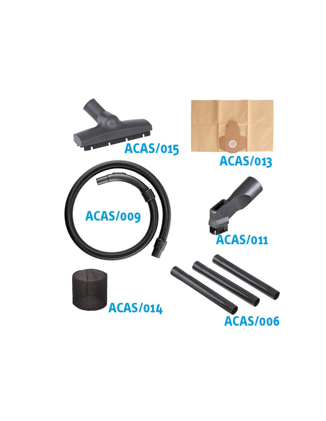 Con serbatoio in ABS, funzione soffiaggio, completo di accessori. L’Aspirapolvere-liquido è un aspiratore per polveri e liquidi a depressione per uso domestico o industriale, idoneo per la raccolta di polveri, piccoli rifiuti ed anche liquidi (rimuovendo il filtro interno). Maneggevole, facile da usare, facilmente apribile per lo svuotamento ed ispezionabile per le operazioni di manutenzione, l’aspiratore è in grado di rispondere efficacemente a tutte le vostre esigenze di pulizia, dai piccoli lavori di bricolage all'utilizzo professionale. Il prodotto è composto dalle seguenti parti: bidone raccolta rifiuti e liquidi, spazzola grande, ruote pivotanti, gancio chiusura coperchio, tubo rigido, impugnatura tubo flessibile, ingresso tubo di aspirazione, interruttore avvio ed arresto, impugnatura coperchio motore, tubo flessibile.