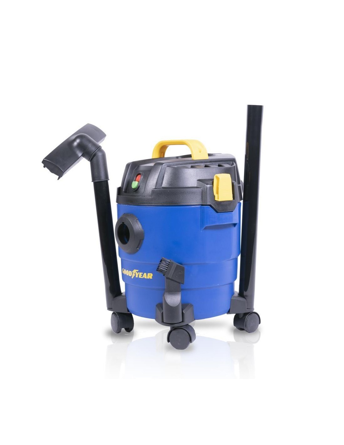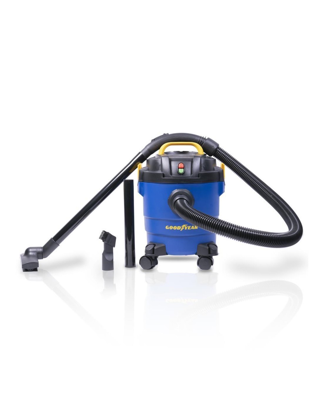 L' aspirapolvere Goodyear GY10VC con la sua potenza di aspirazione di 16kPa e la sua spazzola, può essere usato non solo per aspirare la polvere dai tappeti ma anche per i pavimenti bagnati.