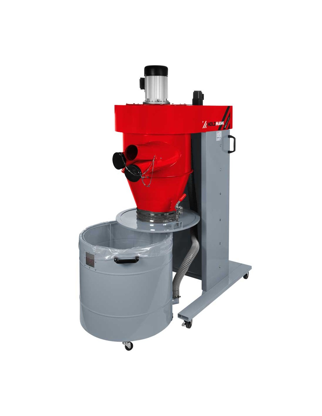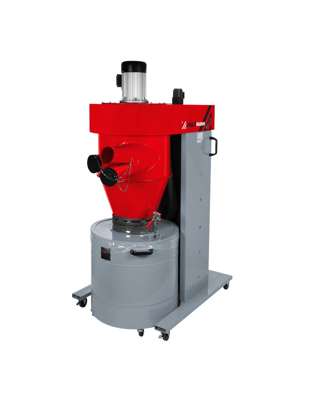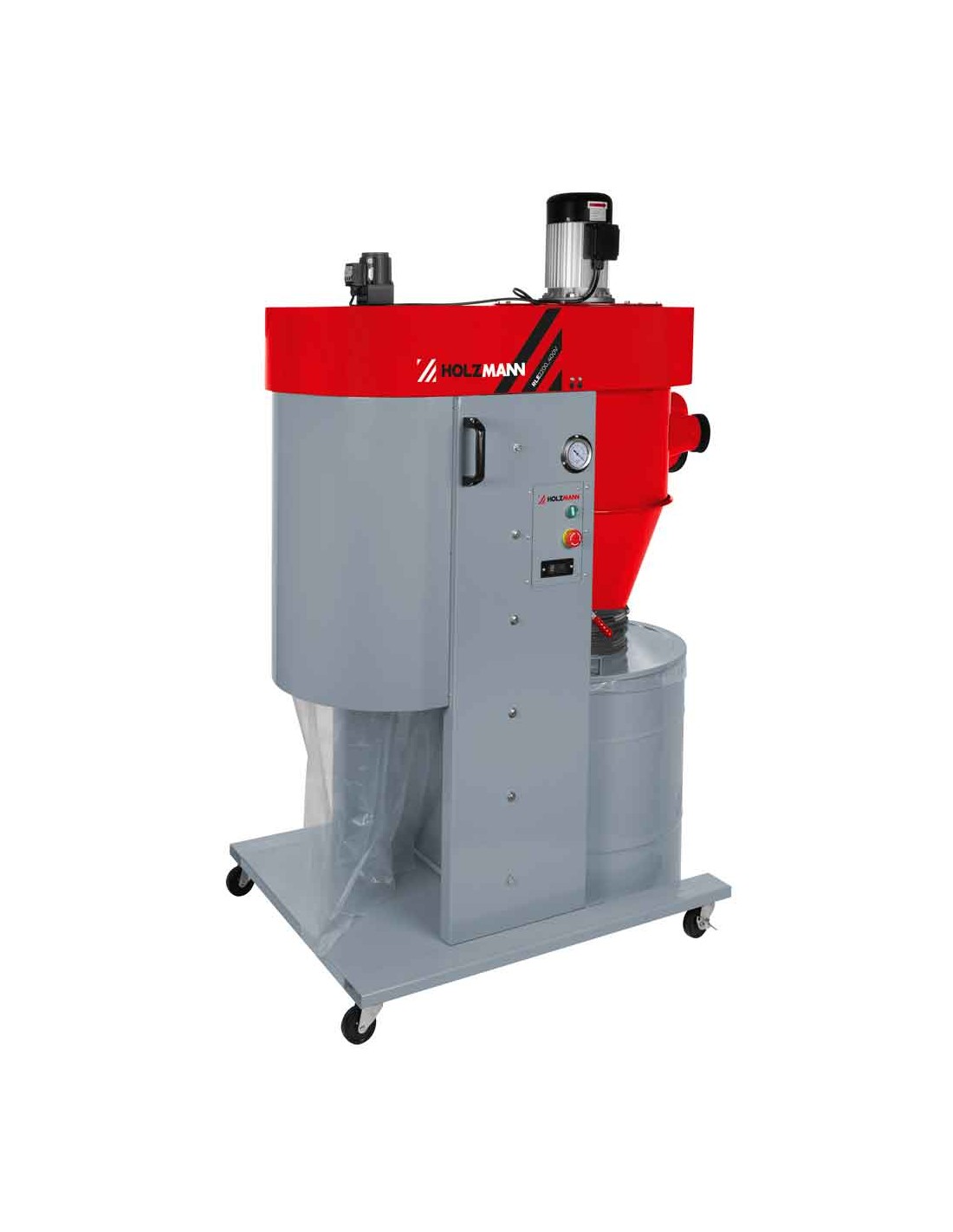 L'aspiratore di polveri ad aria pulita HOLZMANN RLE2200_400V con telecomando, vacuometro, separatore a ciclone e cartuccia filtrante è il sistema di aspirazione ideale per le vostre macchine per la lavorazione del legno.