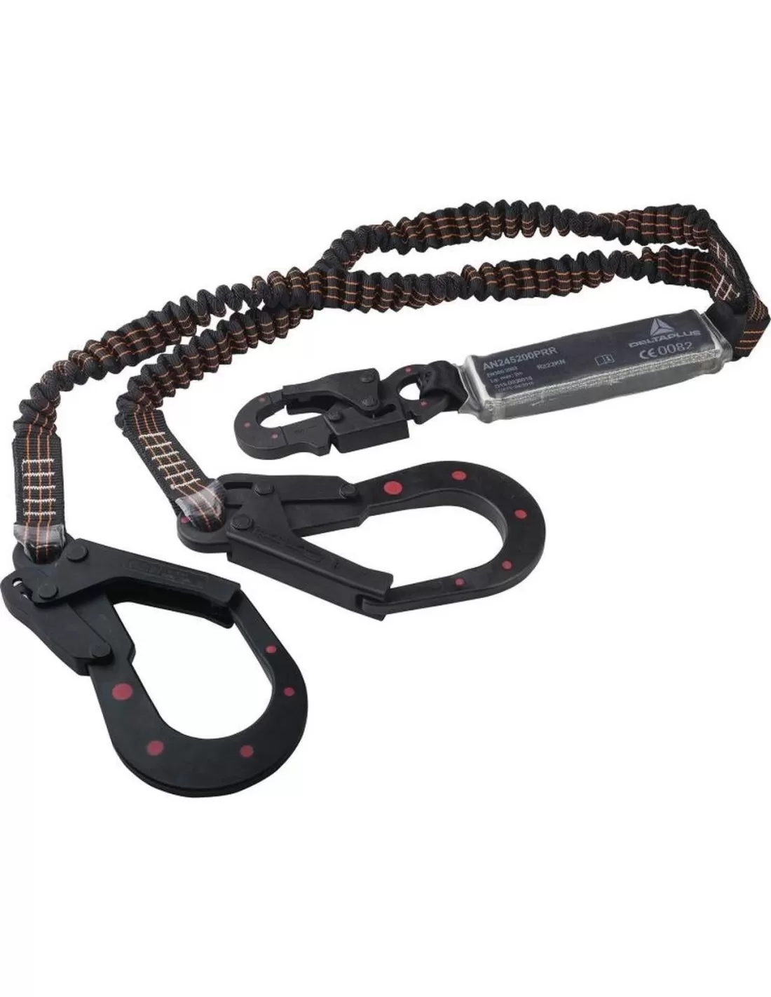 Anticaduta assorbitore di energia dielettrico a cinghia doppia (Y). Terminali capocorda a treccia. 1 moschettone AM010D e 2 connettori AM022D. Materiale isolante a 30kV.