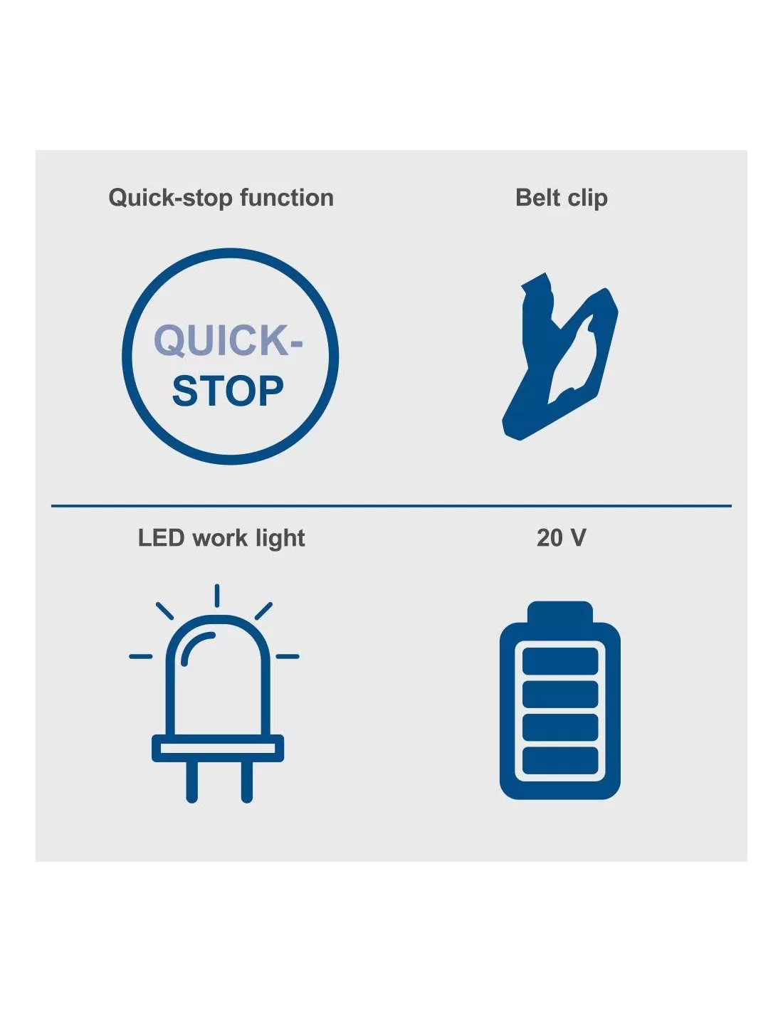 - Illuminazione ottimale dell'area di lavoro grazie alla luce LED integrata con una durata di illuminazione prolungata di 10 secondi dopo lo spegnimento