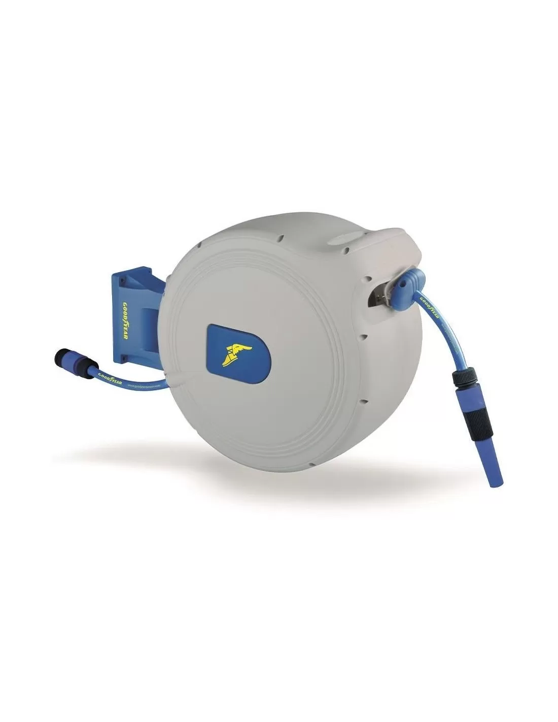 Avvolgitore automatico per tubi fino a 30 metri di lunghezza. Telaio realizzato in polipropilene resistente agli urti e alla ruggine, leggero e resistente, in modo da poterlo trasportare ovunque ti serva.