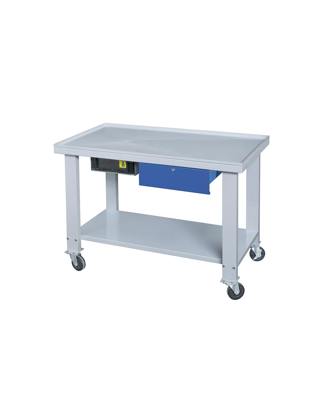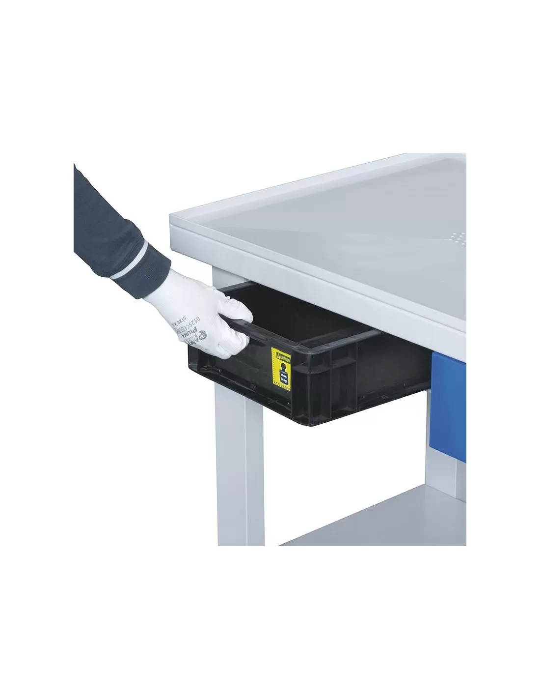 Fornito in kit di montaggio, con cassetto dotato di serratura, vasca estraibile e ruote pivotanti di cui due dotate di freno