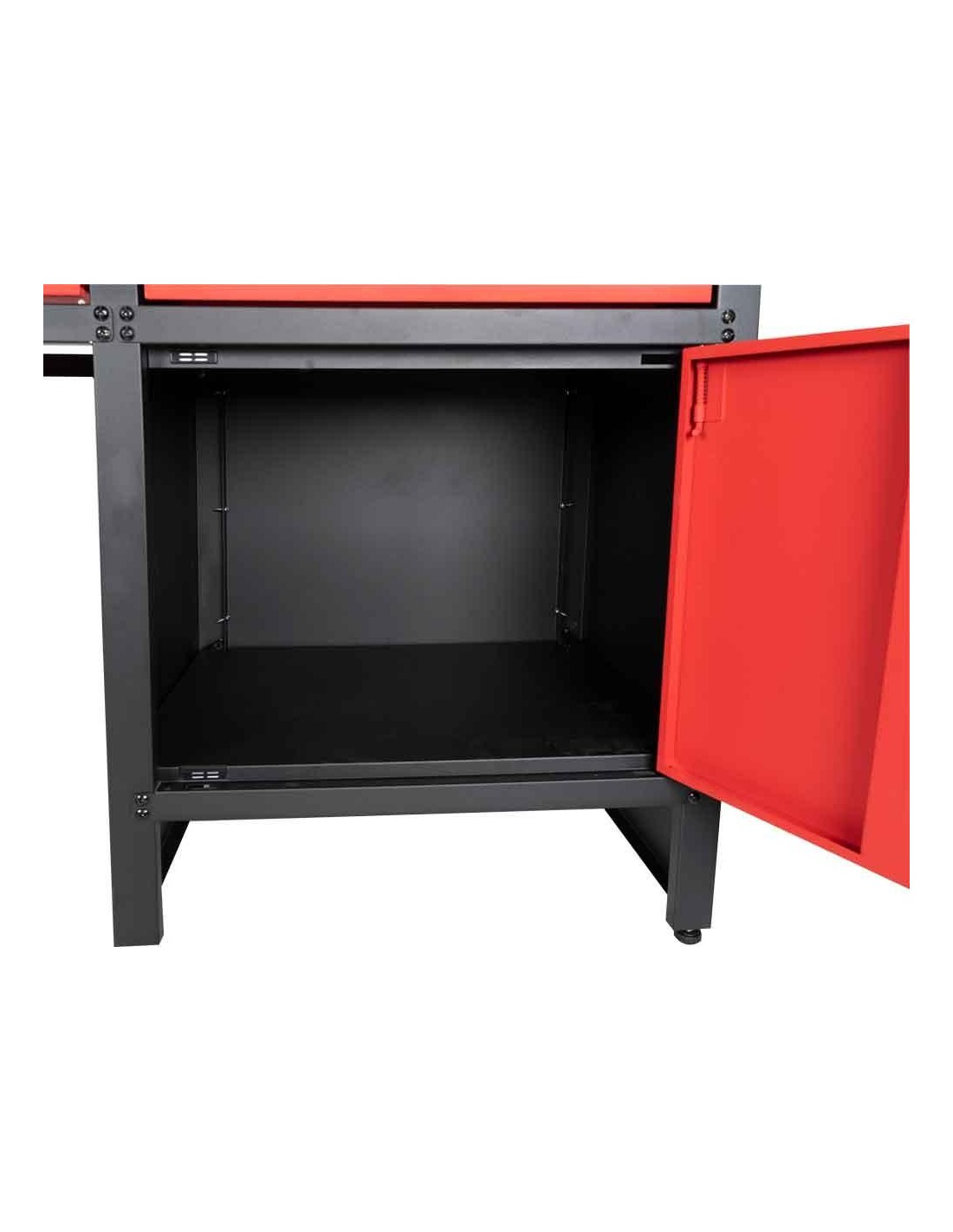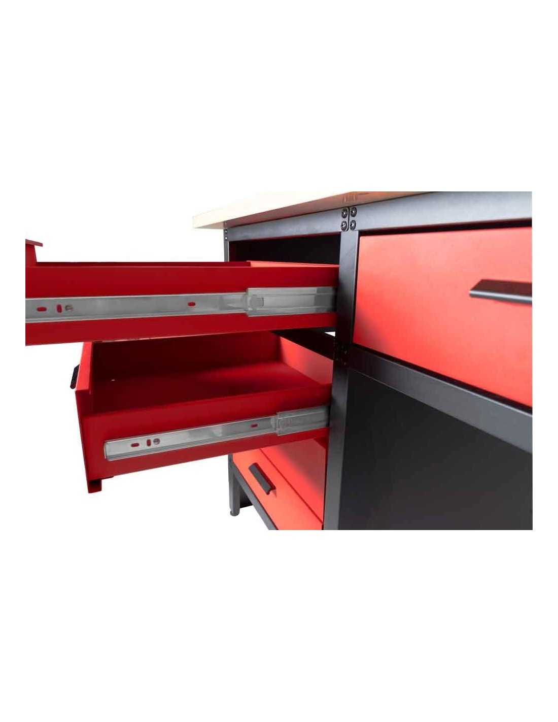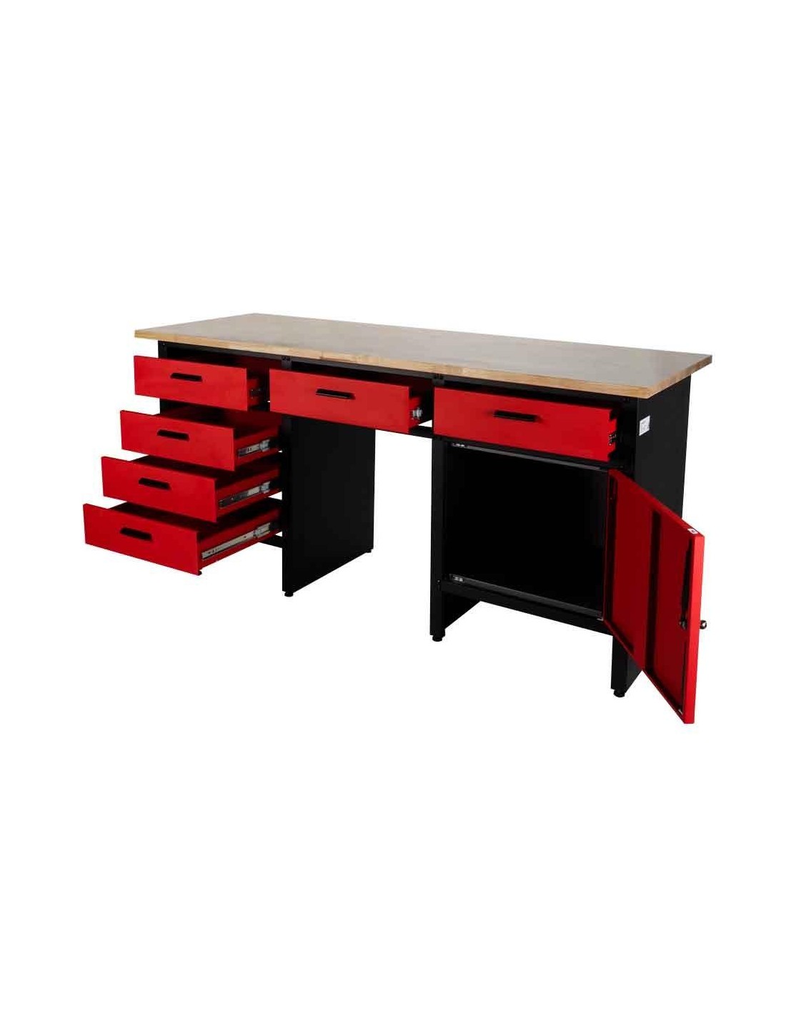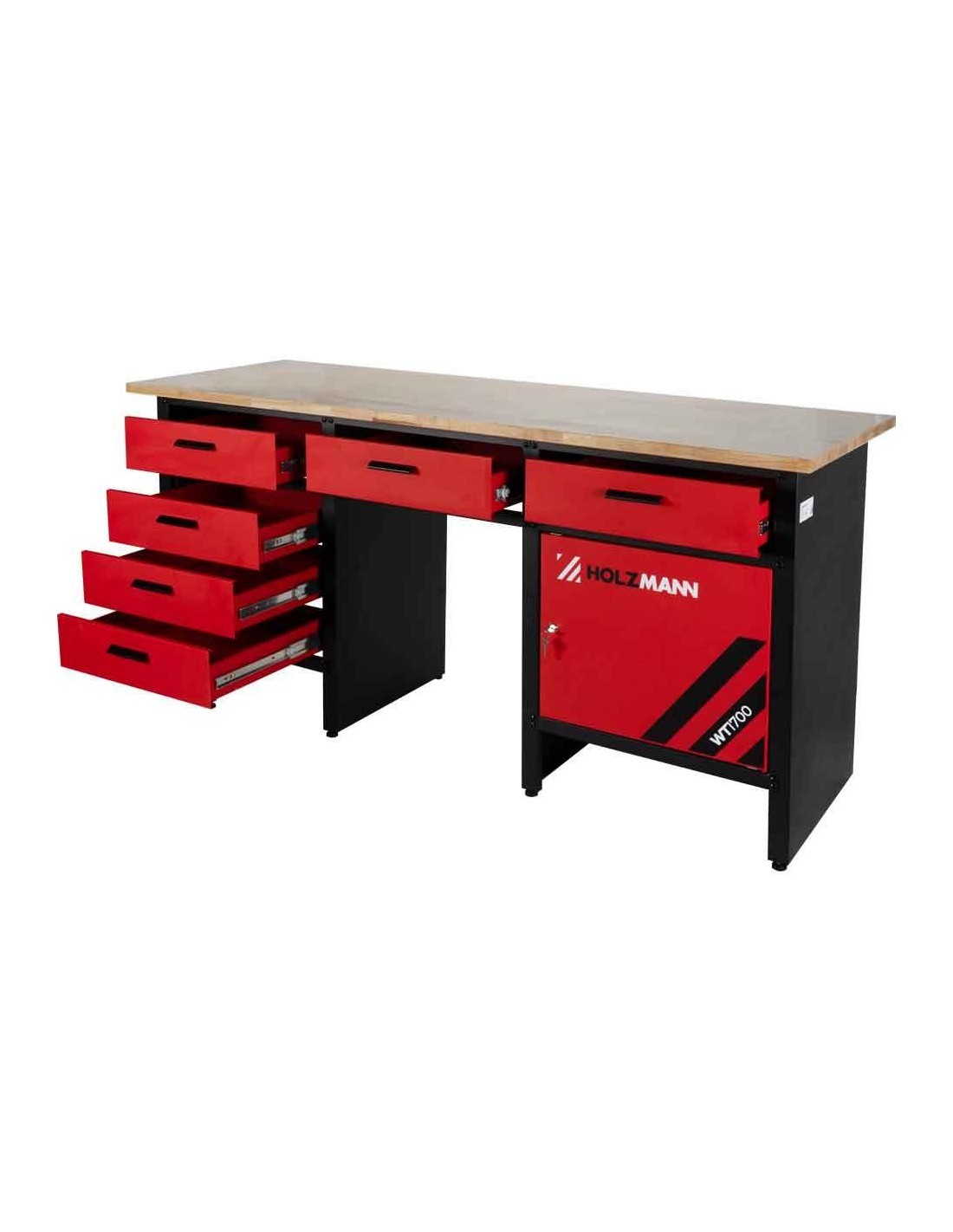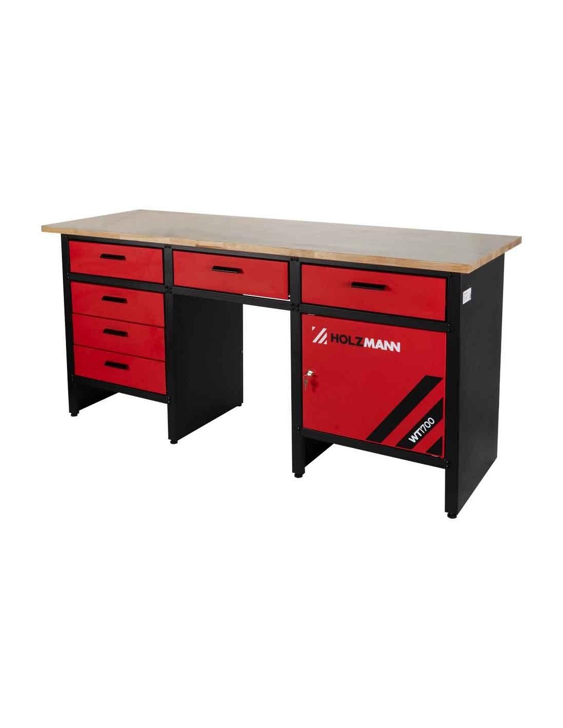 Il banco da lavoro HOLZMANN WT1700 con 6 cassetti e un armadio nonché un piano di lavoro in legno con spessore di 25 mm è perfetto per la tua officina. Ampio spazio di stivaggio, ampio piano di lavoro e piedini regolabili completano il prodotto.