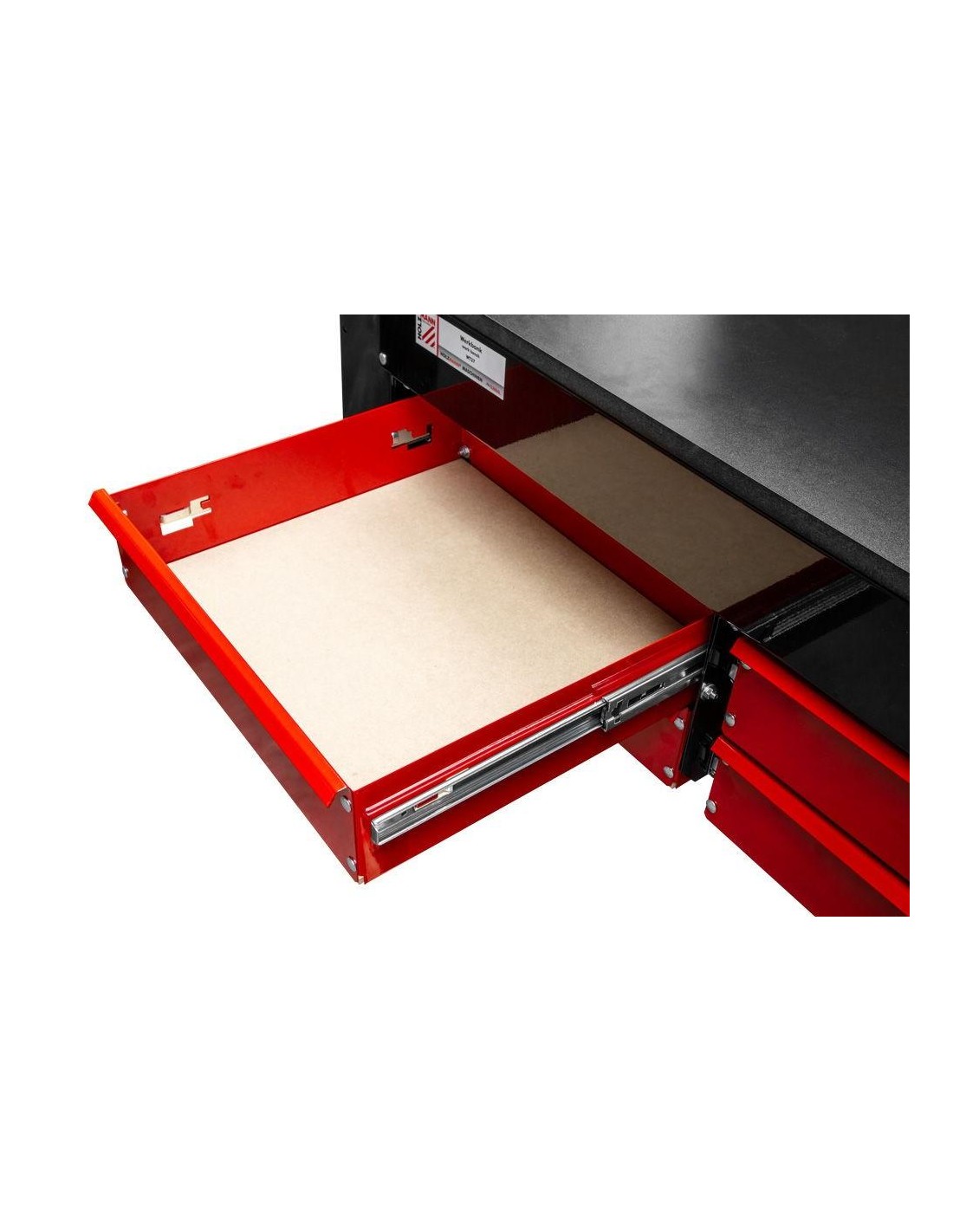 Provvisto di 4 cassetti a scorrimento con cuscinetti a sfera posizionati sotto il piano da lavoro