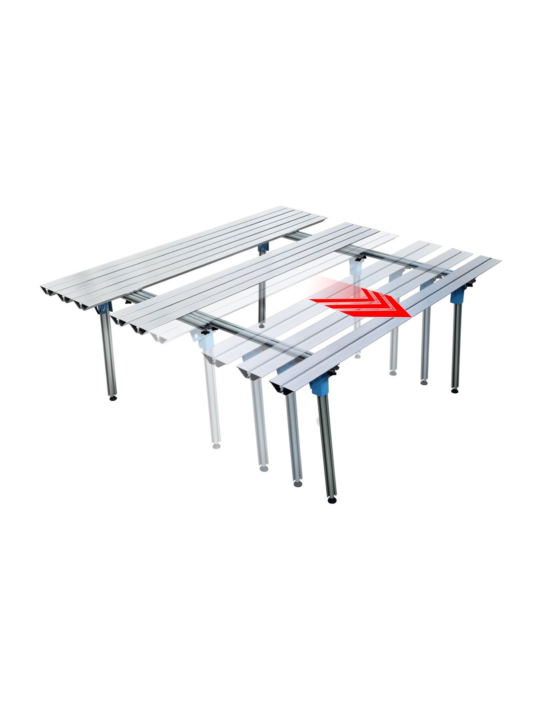 Con i suoi piani facilmente posizionabili è possibile creare zone vuote per effettuare lavorazioni che attraversano la piastrella, come fori e tasche. È inoltre possibile aggiungere o spostare i piani per creare una superficie di lavoro continua. Più banchi da lavoro sono collegabili fra loro per ottenere un piano di appoggio unico lungo 360cm.