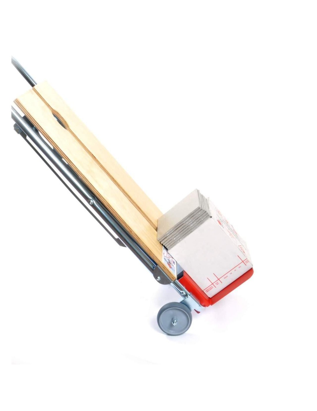 Piattaforma di carico adatta per il trasporto di piastrelle, colla, ecc. posizionata al di sotto del piano di lavoro in modo da poter usare tutti i modelli di tagliapiastrelle, senza vincoli di spazio.
