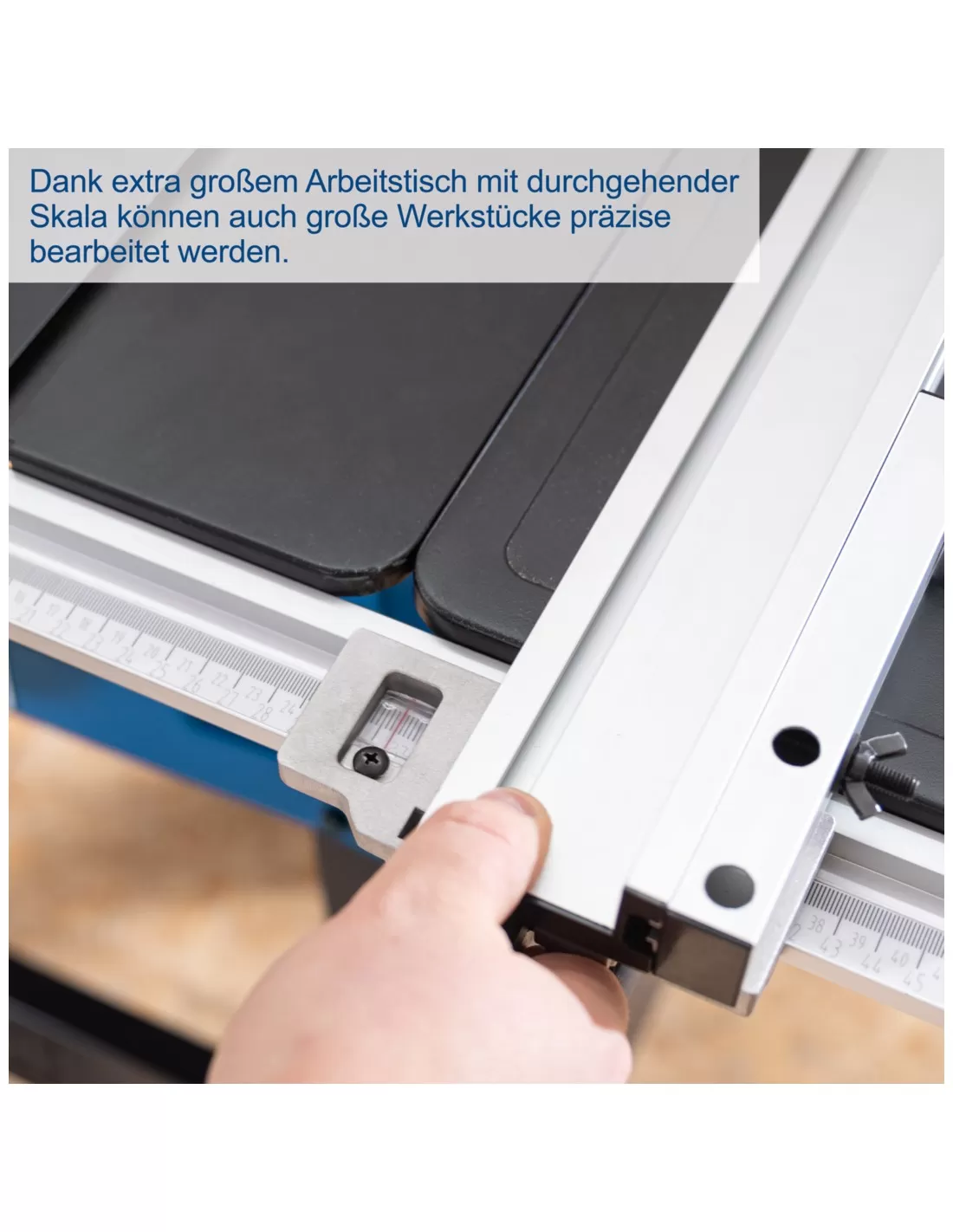 • Le prolunghe del tavolo su entrambi i lati consentono la lavorazione di pezzi di grandi dimensioni