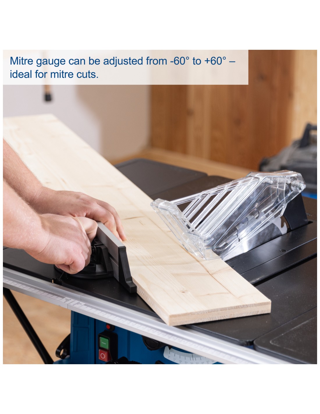 • La guida angolare è regolabile da -60° a +60°, ideale per tagli obliqui