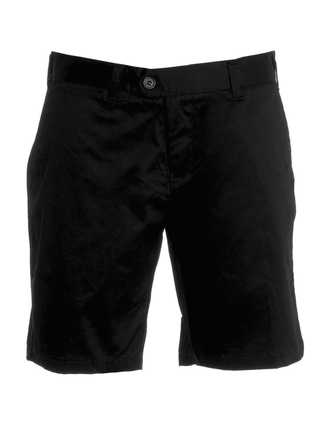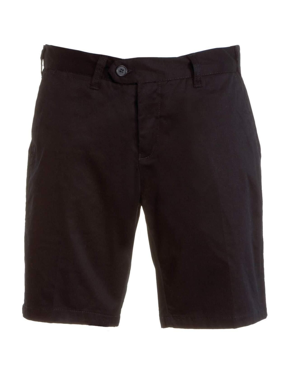 Bermuda classico da donna, chiusura con zip e bottone, vita con passanti con due tasche anteriori dritte e due tasche posteriori a filo con bottone.