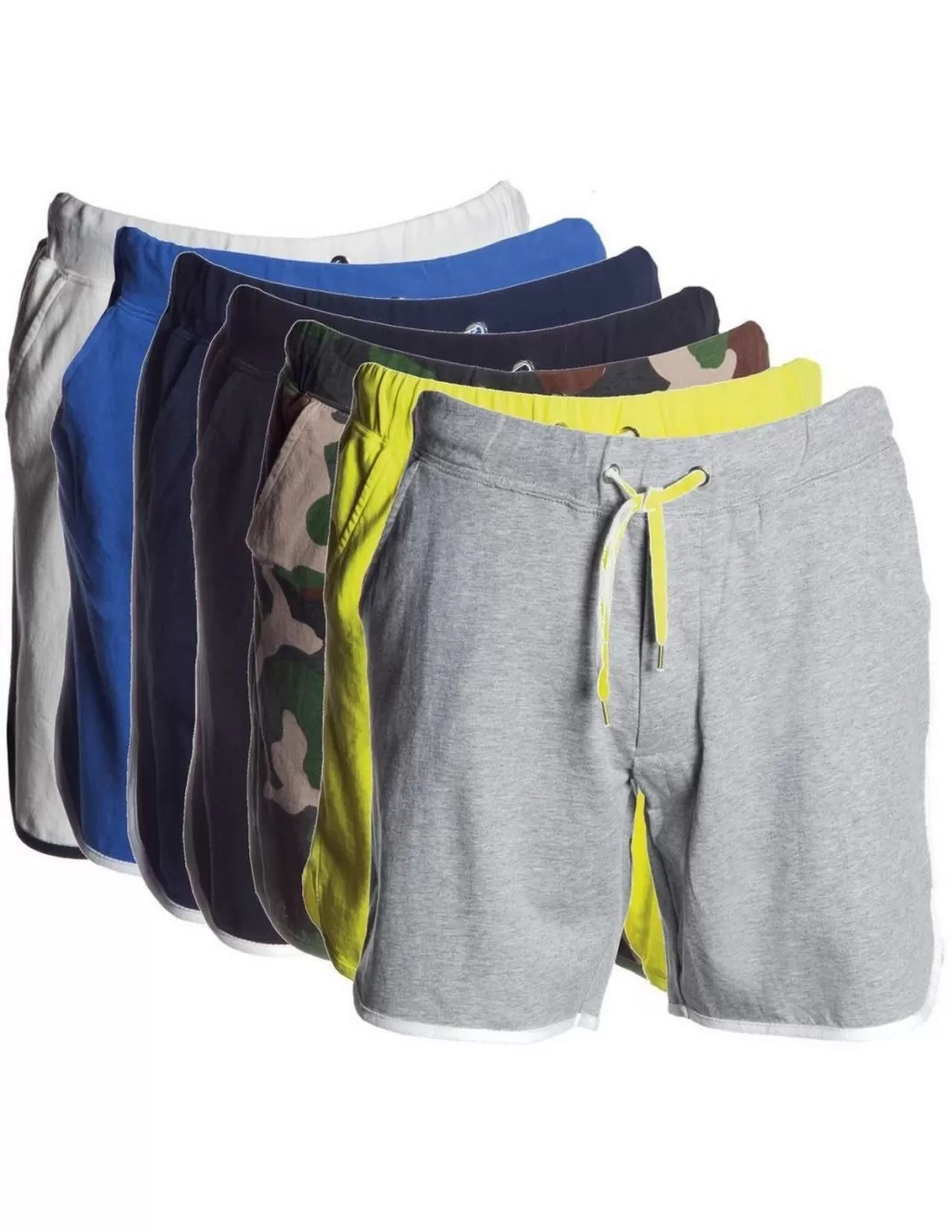 Bermuda in felpa con elastico e coulisse in vita, patta con zip, due tasche frontali e bordino di finitura a contrasto.