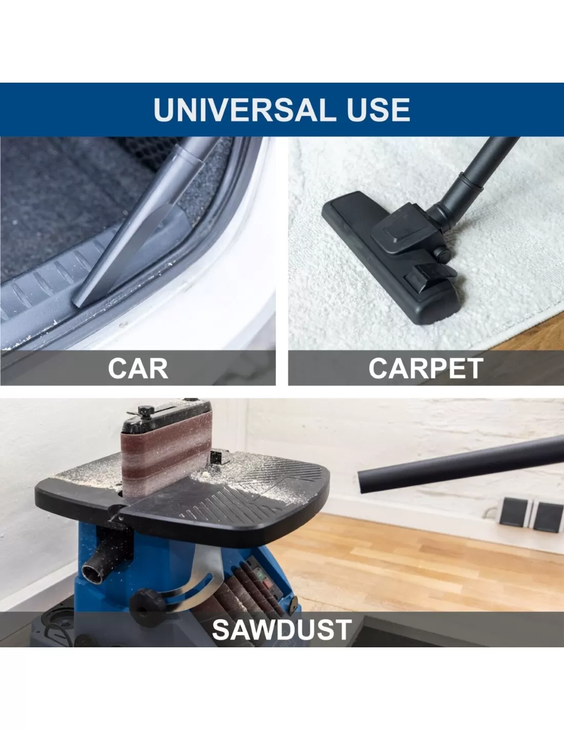 ASPIRAPOLVERE UMIDO/SECCO SENZA FILI DA 12 L • Aspirapolvere umido/secco compatto, 10 kPa per l'aspirazione di liquidi e l'aspirapolvere a secco, con funzione di soffio d'aria • Lavoro senza fili con la serie Scheppach IXES 20 Volt – tutte le batterie e i caricabatterie di questa serie di sistemi possono essere combinati con l'aspirapolvere umido/secco senza fili • Robusto raccoglitore infrangibile con una capacità di 12 litri e blocco a sgancio rapido che consente una facile sostituzione del sacchetto • Filtro piegato lavabile filtra anche le particelle di polvere più piccole - Ampio raggio di lavoro, grazie alla lunghezza del tubo flessibile di 1,5 m e ai 3 tubi di prolunga aggiuntivi in plastica - Pratica staffa per accessori per garantire uno stivaggio pulito e un lavoro ordinato - L'impugnatura e le 4 ruote lisce a 360° consentono un facile trasporto - Batteria e caricabatterie disponibili separatamente - Include 3 tubi di prolunga in plastica, filtro piegato, sacchetto di carta (certificato FSC), filtro in schiuma, bocchetta per pavimenti, bocchetta per fessure, tubo di aspirazione