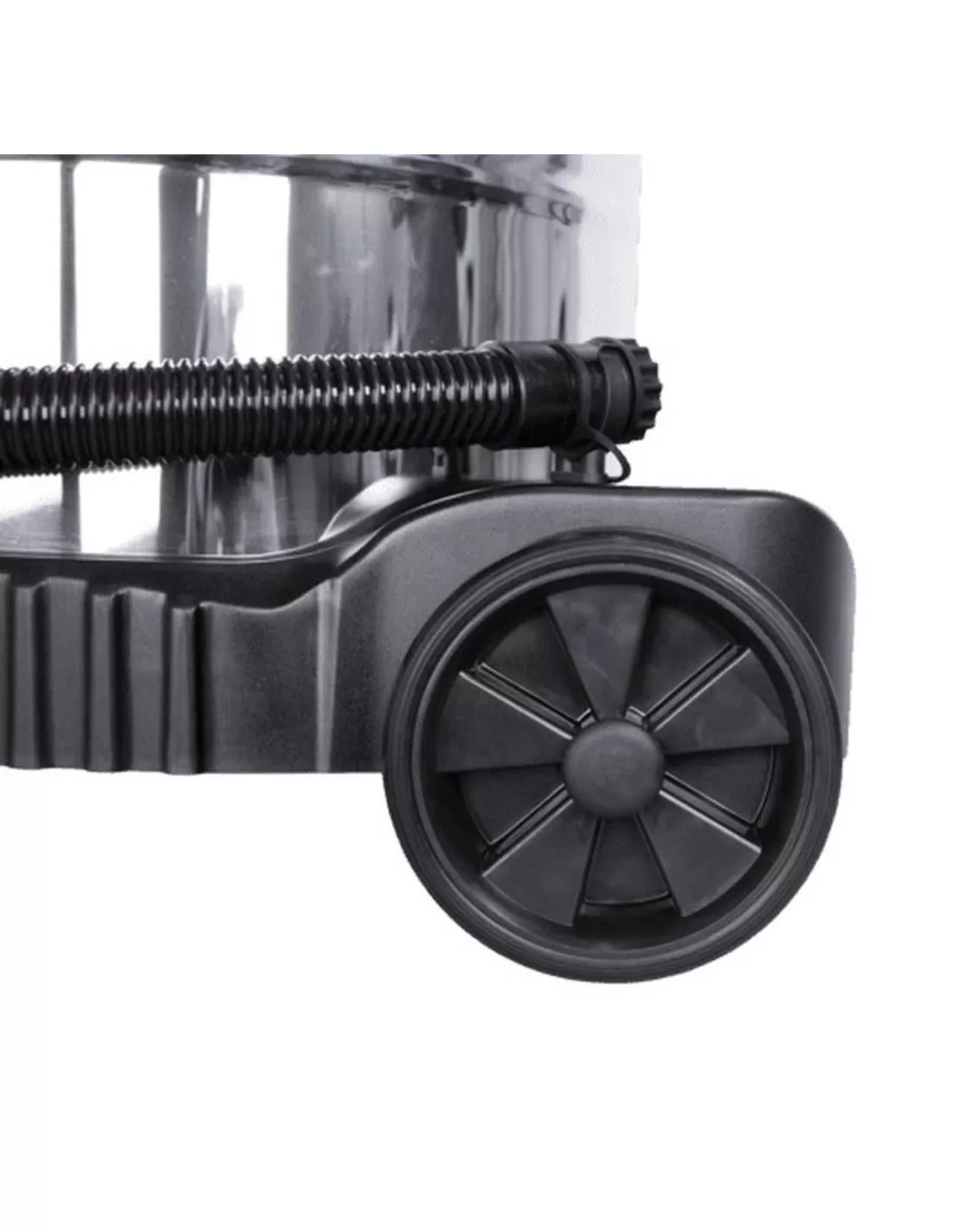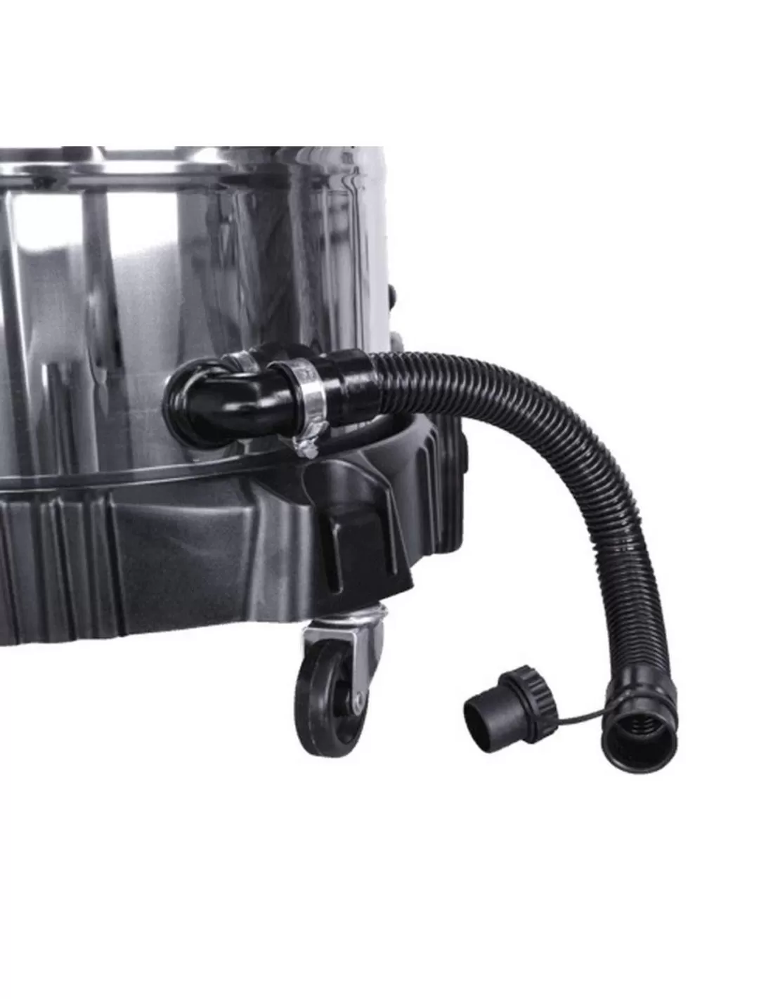 L'aspiratore ASP50-ES soddisfa tutti i bisogni di un professionista per la pulizia del luogo di lavoro grazie alla maniglia superiore con avvolgicavo, al grande serbatoio in acciaio inox, all'attacco per la funzione di soffiaggio, alla grande apertura per il drenaggio dell'acqua e al supporto per gli accessori.