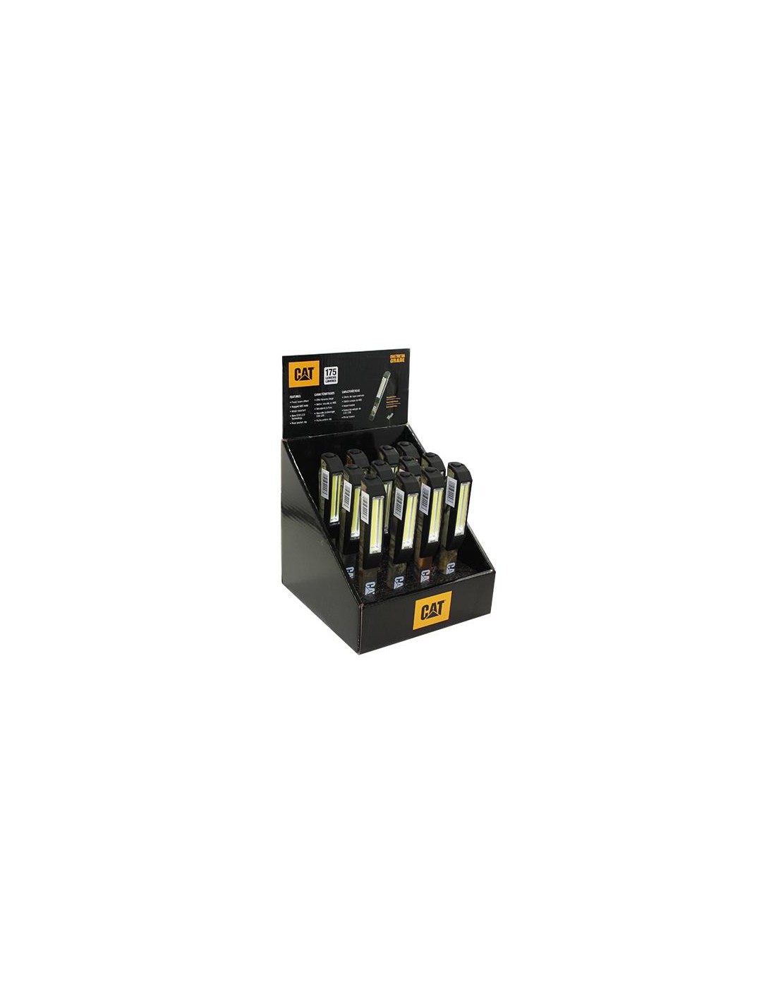 Box da 12 lampade torce tascabile CAT CT1200: Queste lampade tascabili riescono a coprire un’ampia area con un fascio di luce brillante. Perfette sia per il lavoro, che per il tempo libero e l’utilizzo in casa. Il modello CT1200 è dotato di un rivestimento in ABS mimetico.