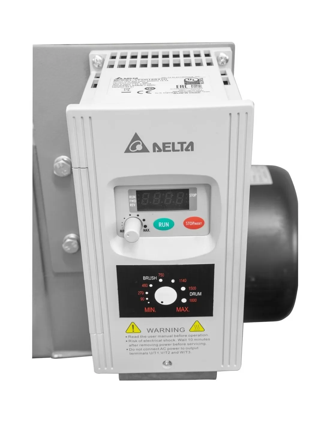 Un tamburo levigatore a frequenza controllata consente qualsiasi regolazione del numero di giri in base al tipo di tamburo levigante utilizzato.