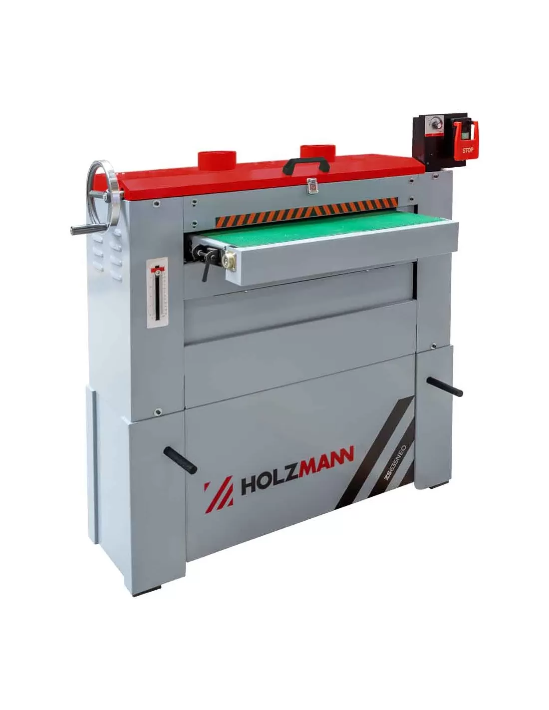 Levigatrice cilindrica HOLZMANN ZS635NEO_400V con 2 rulli abrasivi e nastro di avanzamento per una finitura perfetta del vostro pezzo in legno. 2 rulli abrasivi
