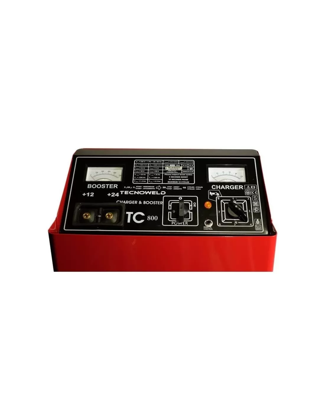 Caricabatteria auto portatile con avviatore professionale completo di telecomando, per batterie da 12/24V 40-1600Ah. Tre regolazioni (slow-fast-boost). Alimentazione 220V, 1600/2700W. Ricarica solo batterie al piombo con 9+9 regolazioni.