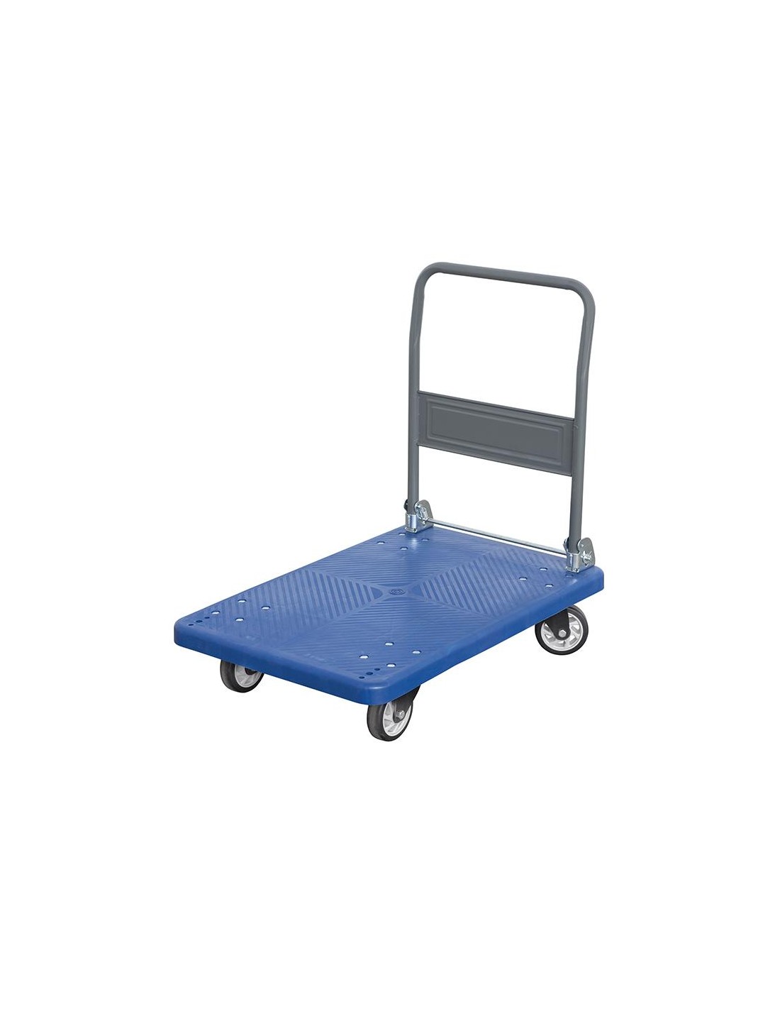 Manico pieghevole, 2 ruote fisse e 2 ruote girevoli Il Carrello con piattaforma è ideale per la movimentazione di carichi stabili o disposti in contenitori, su pavimenti piani, levigati come i pavimenti dei capannoni industriali e di durezza e resistenza adeguate a sostenere il peso del Carrello più la portata nominale massima. Il carrello è dotato di ruote pivotanti in corrispondenza del timone e una coppia di ruote sul lato opposto. Per ribaltare il timone è stata disposta una barra nella parte inferiore del timone. Temperatura d’uso, entro il campo –20/+50°C