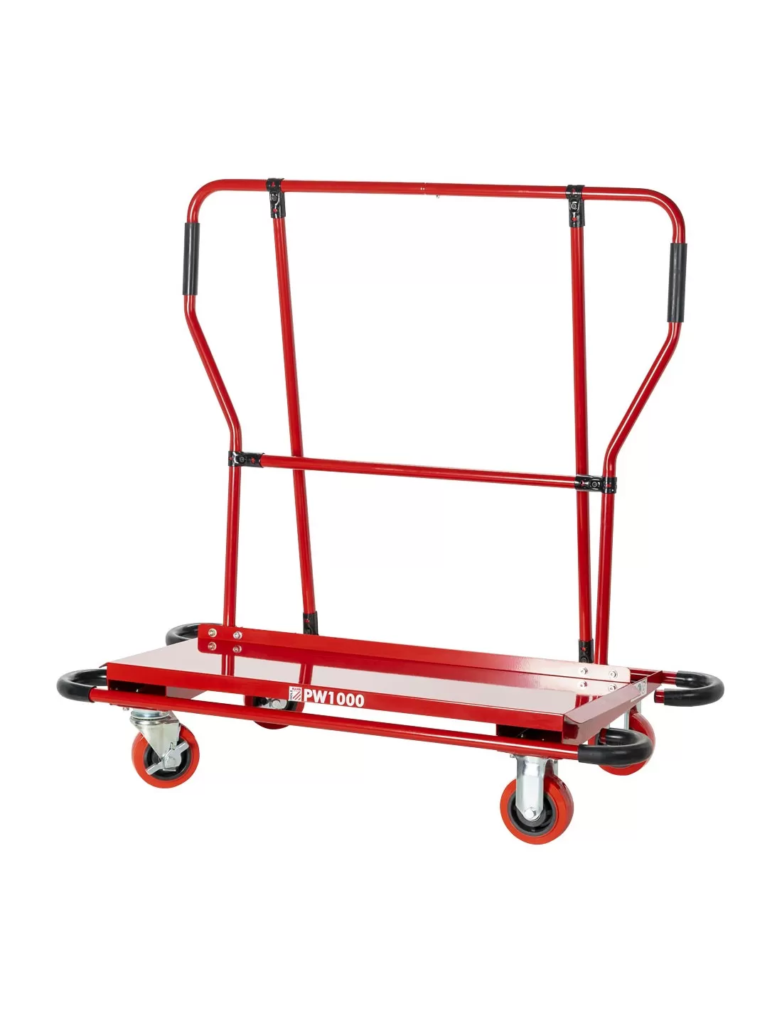 Il carrello portapannelli HOLZMANN PW1000, dotato di ruote in PU (due fisse e due orientabili con freno), consente di trasportare e stoccare pannelli fino a 1000 kg in modo semplice e sicuro.