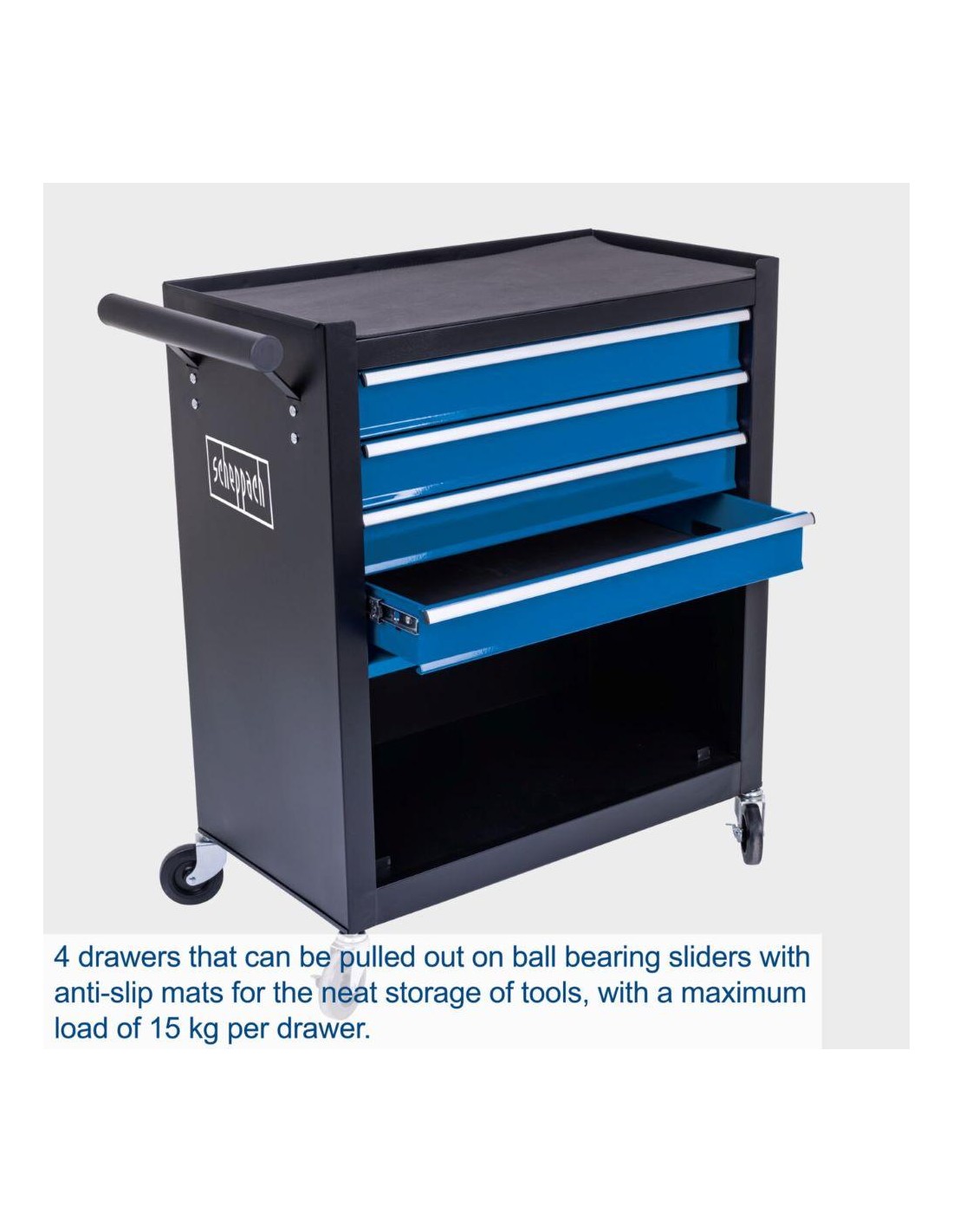 Il carrello da officina Scheppach TW1300 è il compagno ideale per mantenere ordine e organizzazione nella tua officina. Con una capacità di carico massima di 120 kg, questo compatto carrello offre un'ampia area di stoccaggio per utensili e macchinari. Le quattro cassettiere con guide a sfera e rivestimento antiscivolo permettono un facile accesso e una disposizione ordinata degli attrezzi, supportando fino a 15 kg ciascuna. Inoltre, il pratico vano portaoggetti e l'ampia superficie di appoggio aggiuntiva sono perfetti per riporre ulteriori strumenti, sostenendo fino a 30 kg. Grazie alle sue ruote piroettanti a 360 gradi, di cui due dotate di freni, e un robusto manico, il TW1300 è facilmente manovrabile e perfetto anche per spazi ristretti, con dimensioni compatte di 695 x 335 x 755 mm.