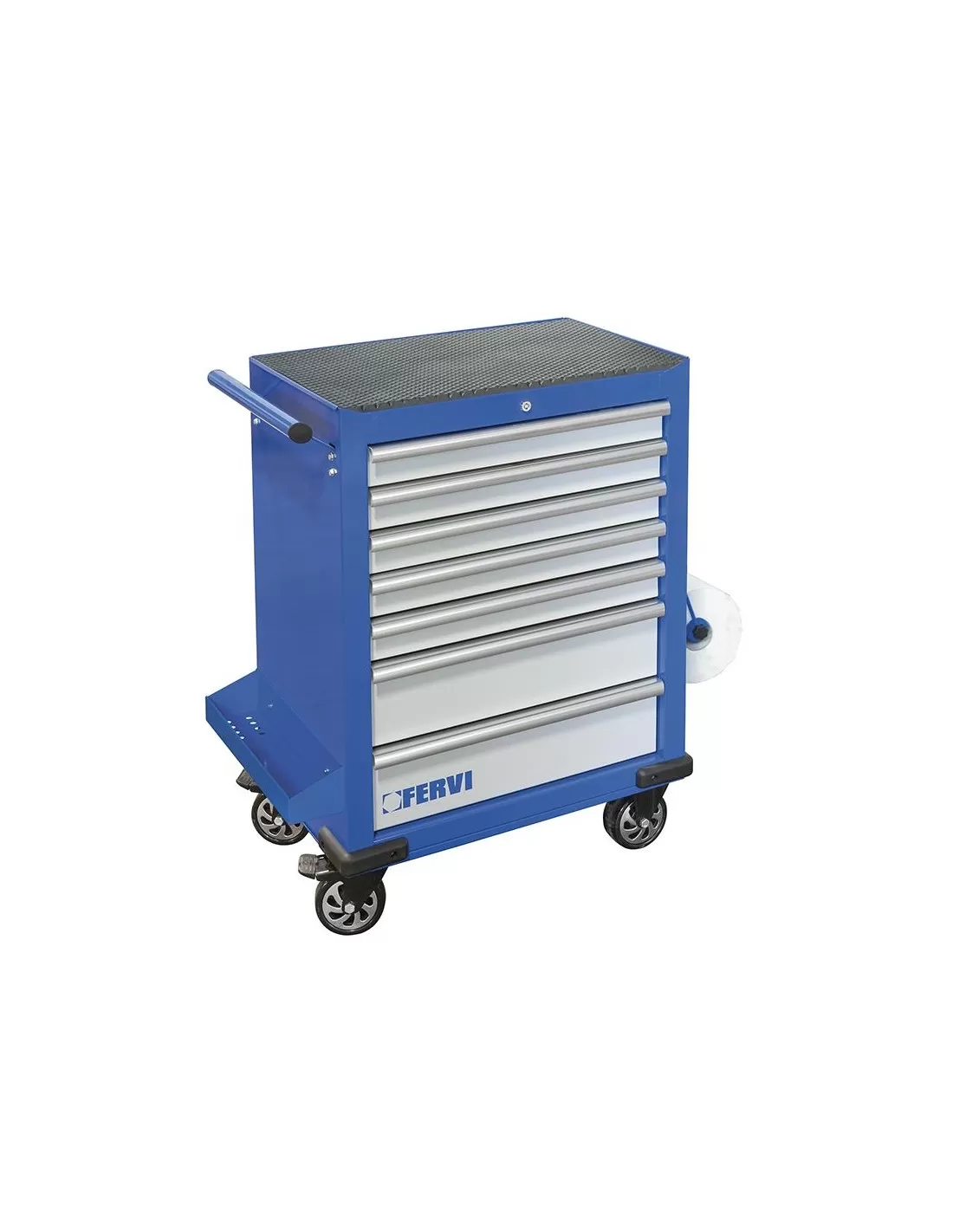 Con cassetti di sicurezza anti-ribaltamento con guide su sfere, serratura centrale, portarotolo e vassoio, 2 ruote fisse e 2 girevoli