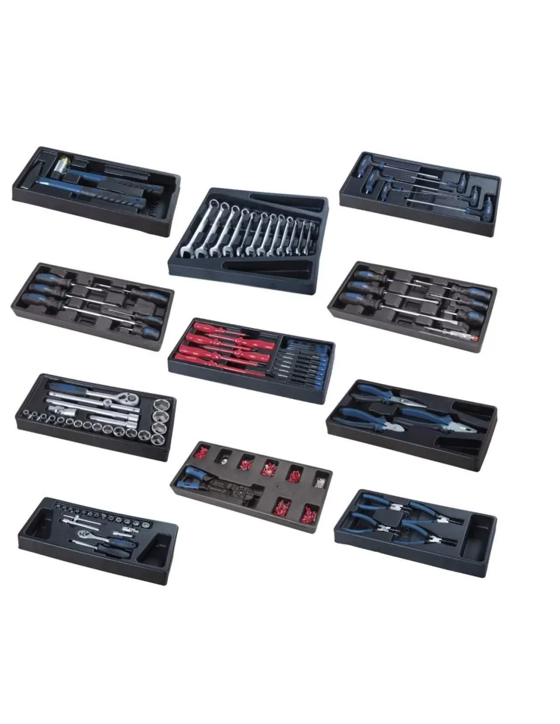 Il carrello solido e resistente è dotato di 263 attrezzi, ognuno dei quali con il suo spazio e quindi sempre facile da trovare.