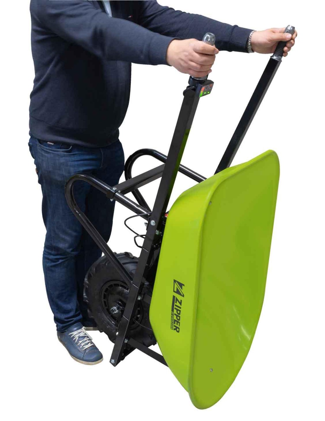 La carriola elettrica ZIPPER ZI-EWB200S colpisce per la sua elevata capacità di carico di 260 kg e il suo design classico.