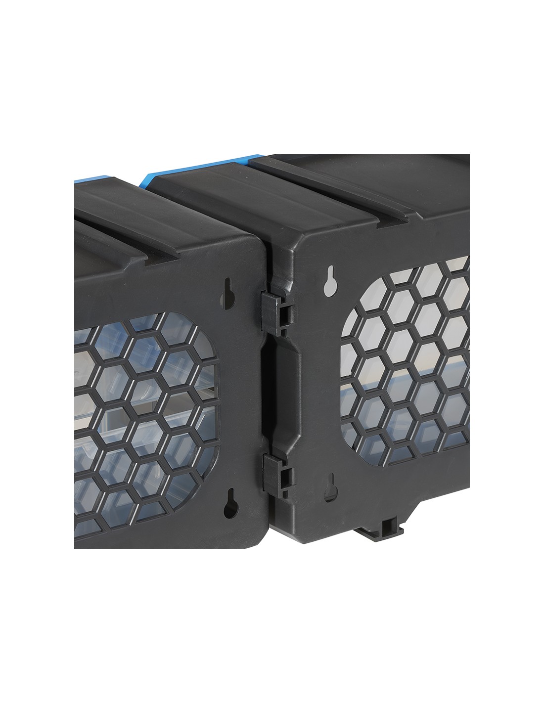 Collegabile con altre cassettiere tramite guide per creare combinazioni infinite. Dotata di bloccaggio dei vassoi per evitare la caduta accidentale del contenuto e fori di fissaggio posteriori per l'aggancio a muro. Costruita in plastica resistente è adatta all'utilizzo in cantiere, domestico e per l'officina.