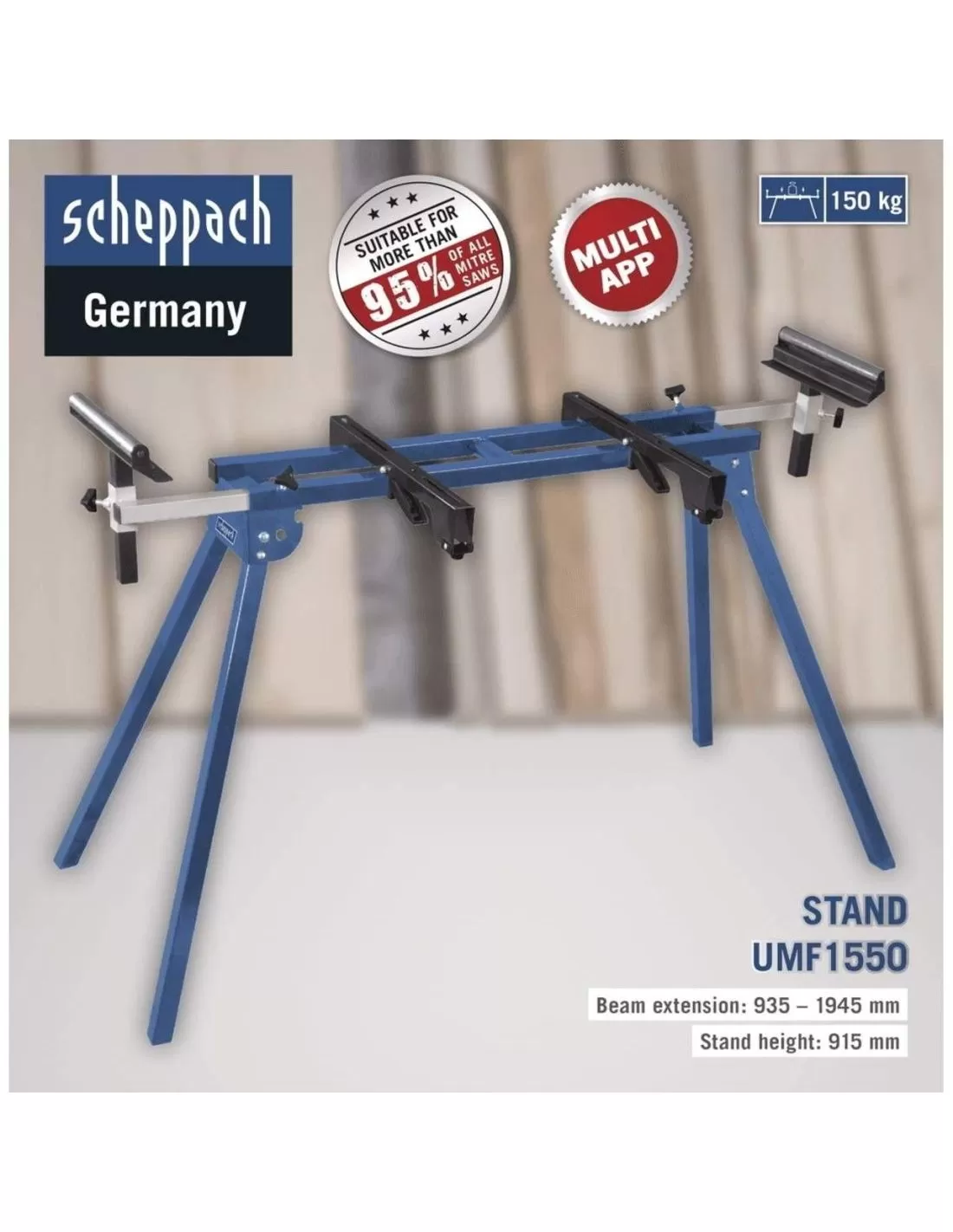 Il supporto universale per troncatrice Scheppach UMF1550 è utilizzabile sulla maggior parte delle troncatrici convenzionali di qualsiasi marca.