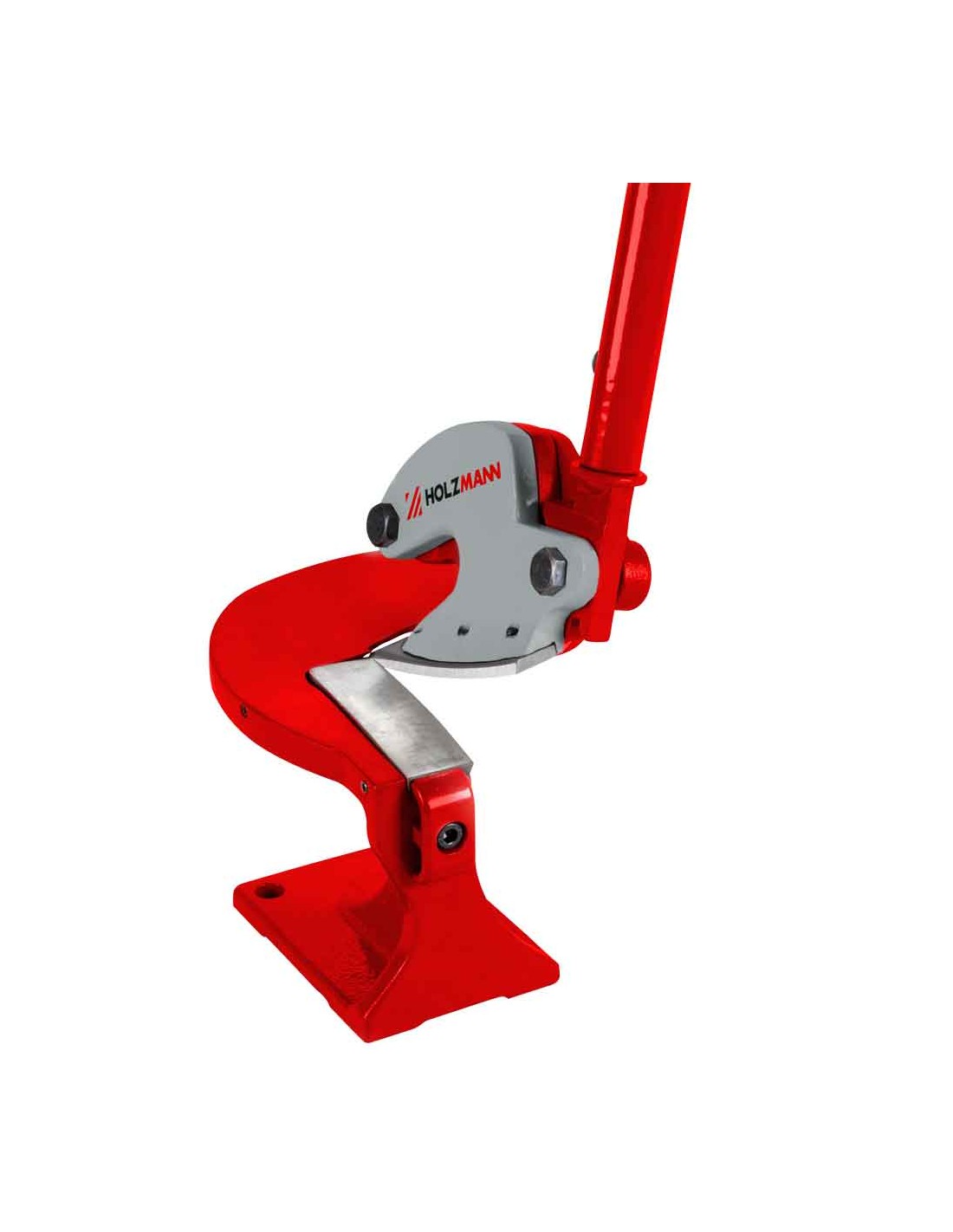 Leva lunga 460 mm per un'elevata trasmissione di potenza. Il design a ganascia aperta consente un taglio particolarmente flessibile. Taglia lamiere d'acciaio fino a 1,5 mm di spessore. Larghezza di taglio 70 mm. 3 fori nella piastra di base per il montaggio fisso. 7 kg