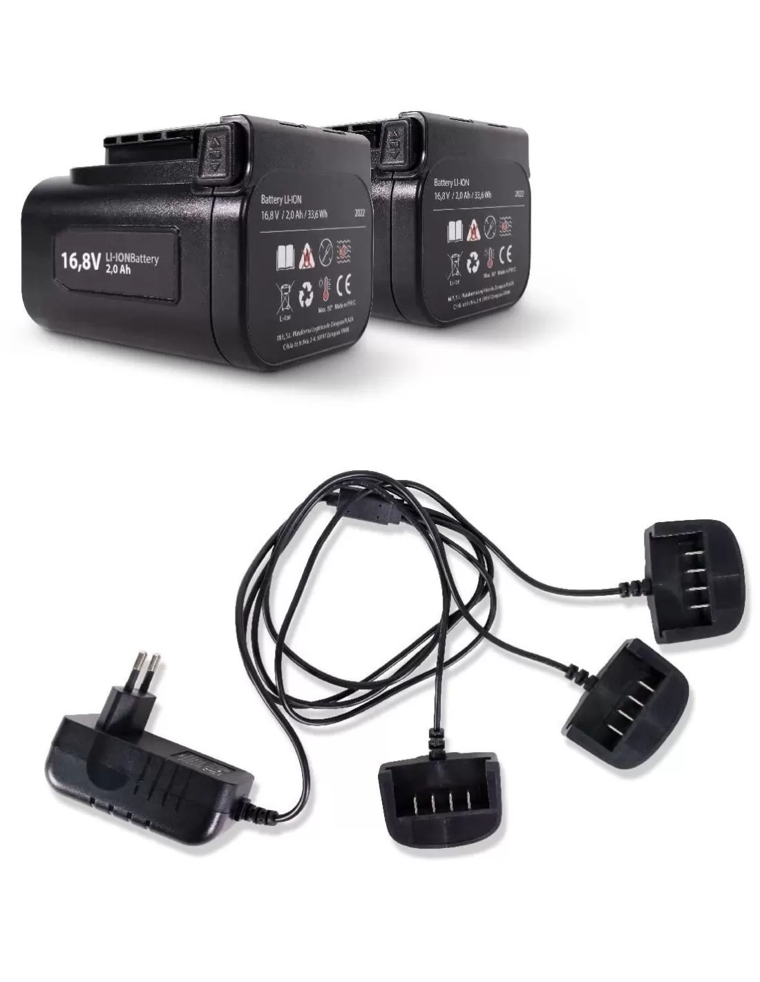 2 batterie incluse , valigetta per il trasporto e kit attrezzi