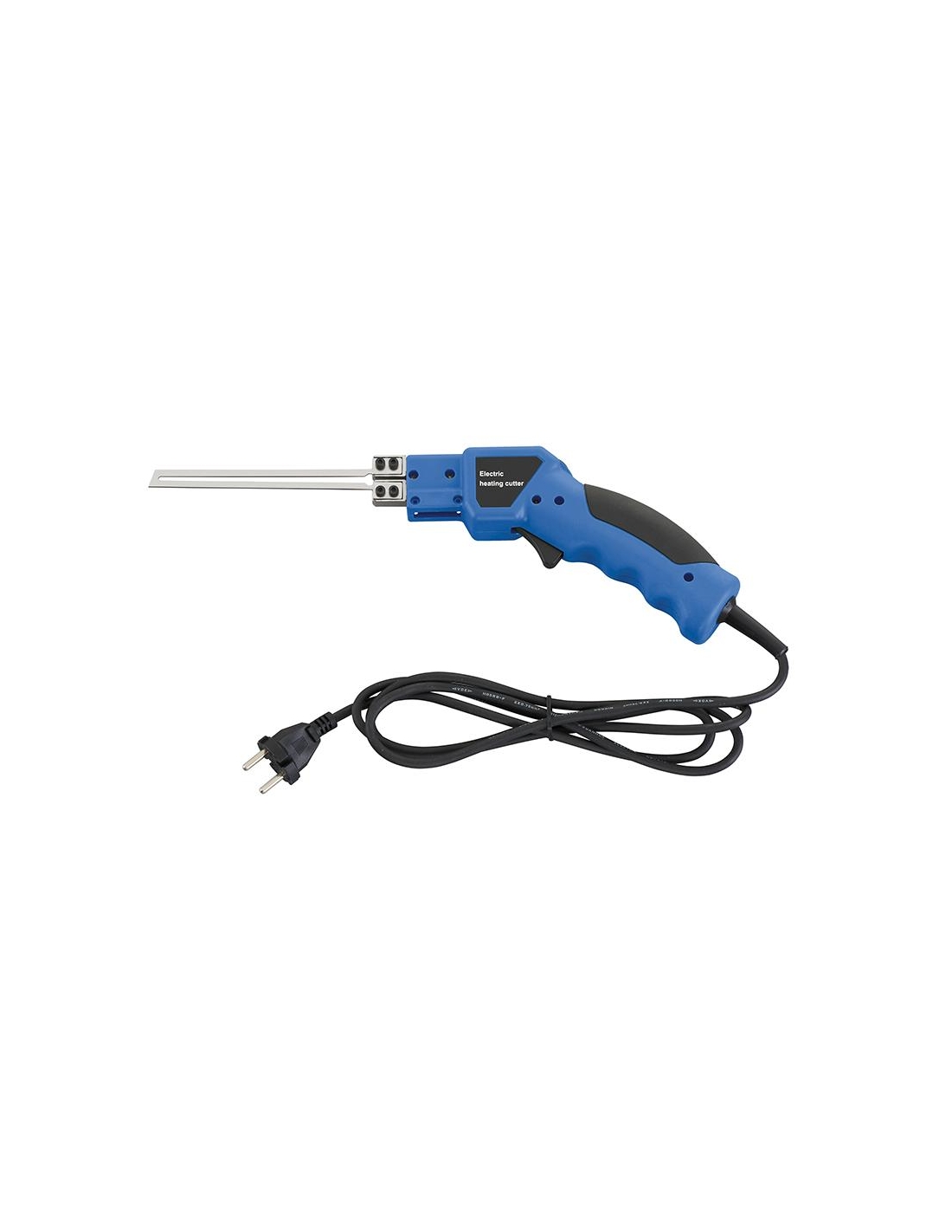 Per polistirolo, plastica, gomma piuma, spugna, profondità di taglio regolabile, supporto in metallo Il Coltello a caldo è l’ideale sia per hobbisti evoluti che per artigiani e professionisti. Il coltello è composto da queste parti: supporto in metallo impugnatura a pistola, cavo di alimentazione, rotella di accensione e selezione temperatura, protezione battuta, LED di accensione e cavo di alimentazione. 15 livelli di temperatura fino a 500°C. Per attivare il riscaldamento della lama, occorre mantenere premuto il pulsante di accensione a grilletto ed aspettare circa un minuto per permettere alla lama di raggiungere la temperatura selezionata. Quando non in uso posizionare sempre il coltello in posizione tale da non permettergli di toccare nessuna parte infiammabile.