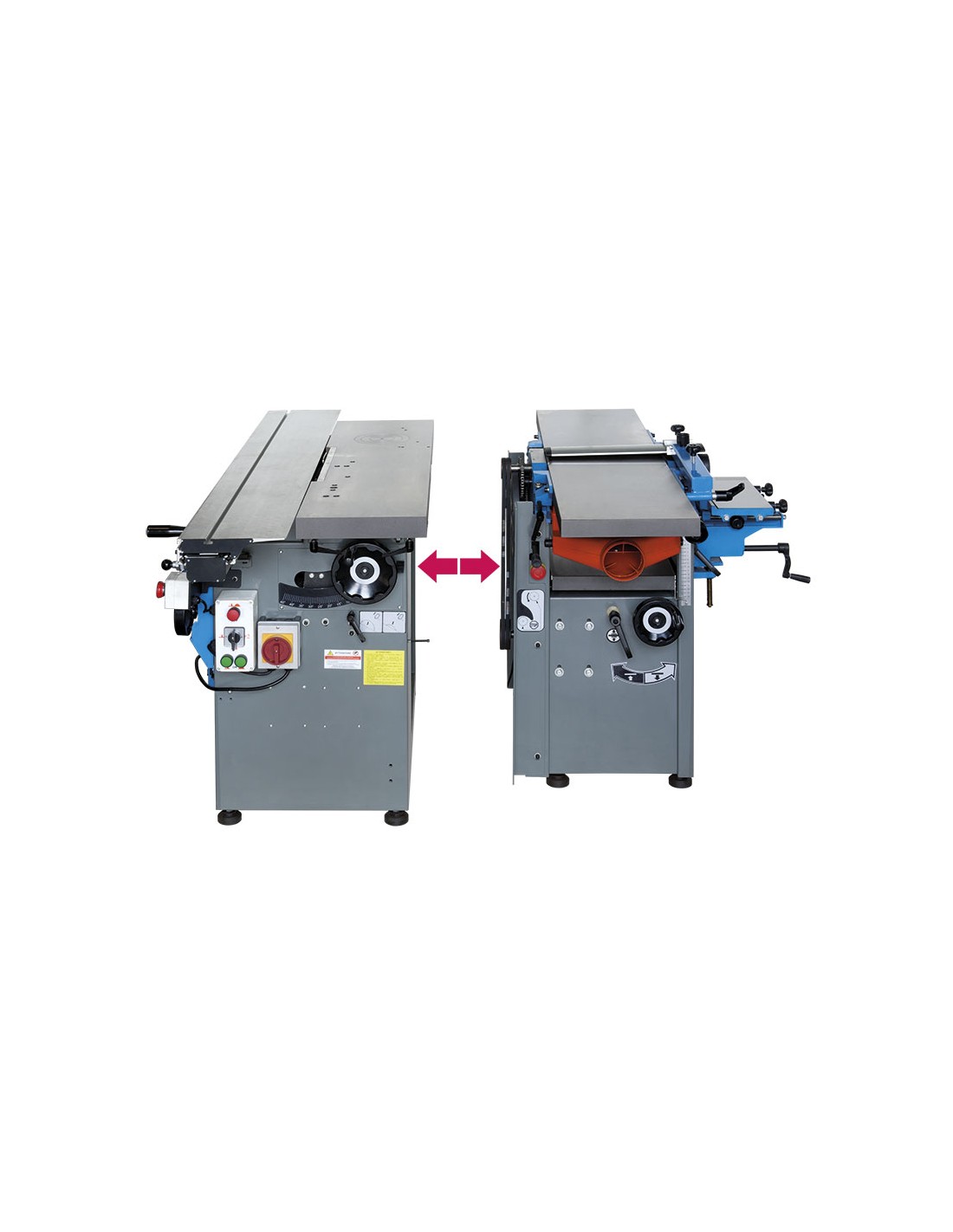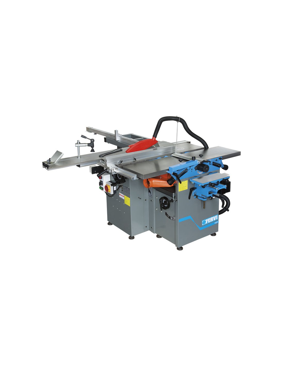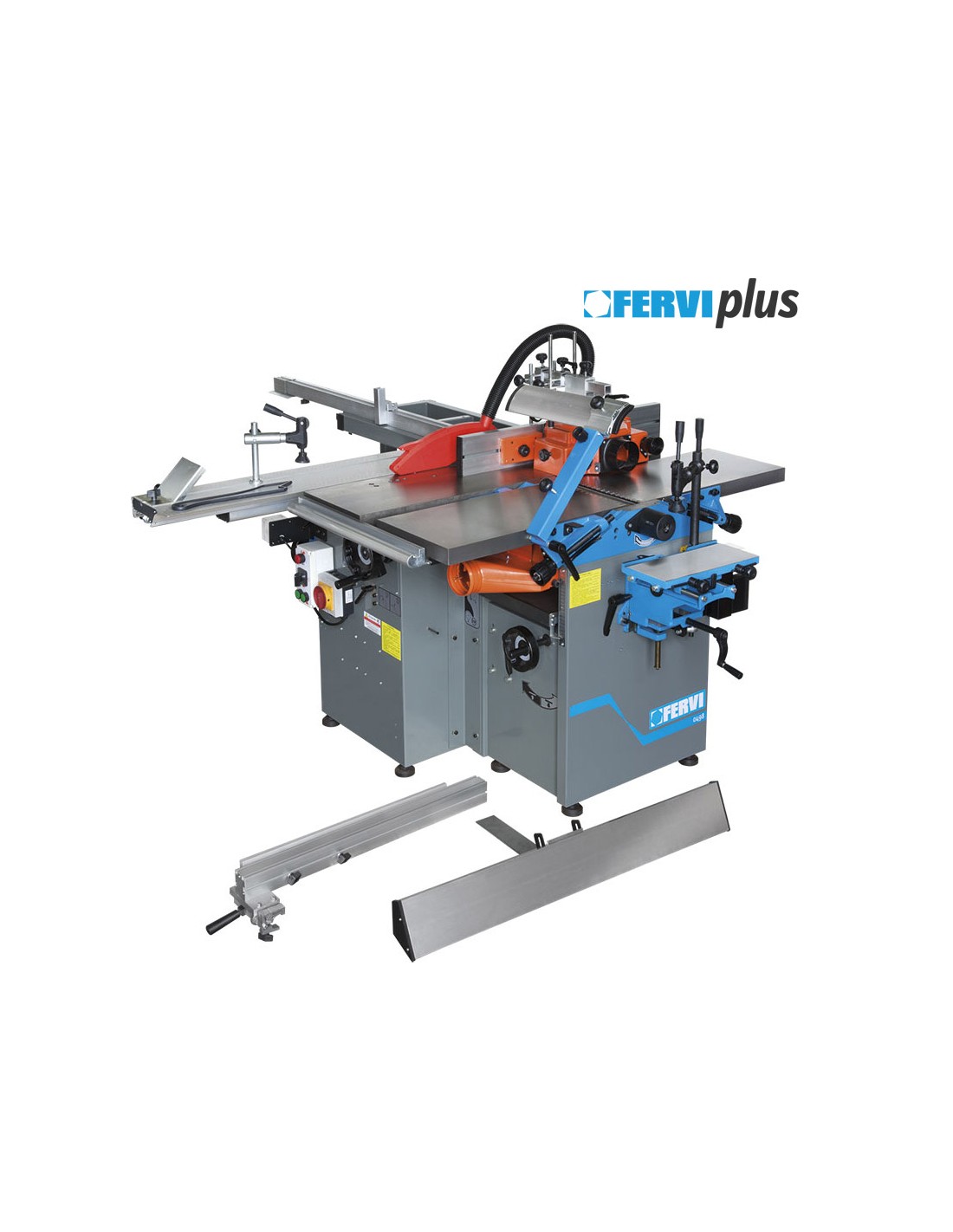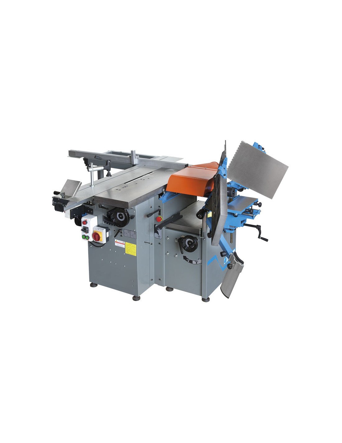 Sega circolare, squadratrice, incisore, toupie, pialla a filo, pialla spessore, cavatrice e carteggiatrice a rullo a 1500rpm. La macchina può essere divisa velocemente (sei bulloni) in due parti per entrare attraverso piccole aperture.