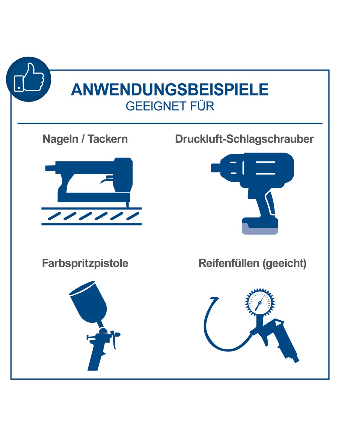 • Universale con un'ampia gamma di utensili pneumatici