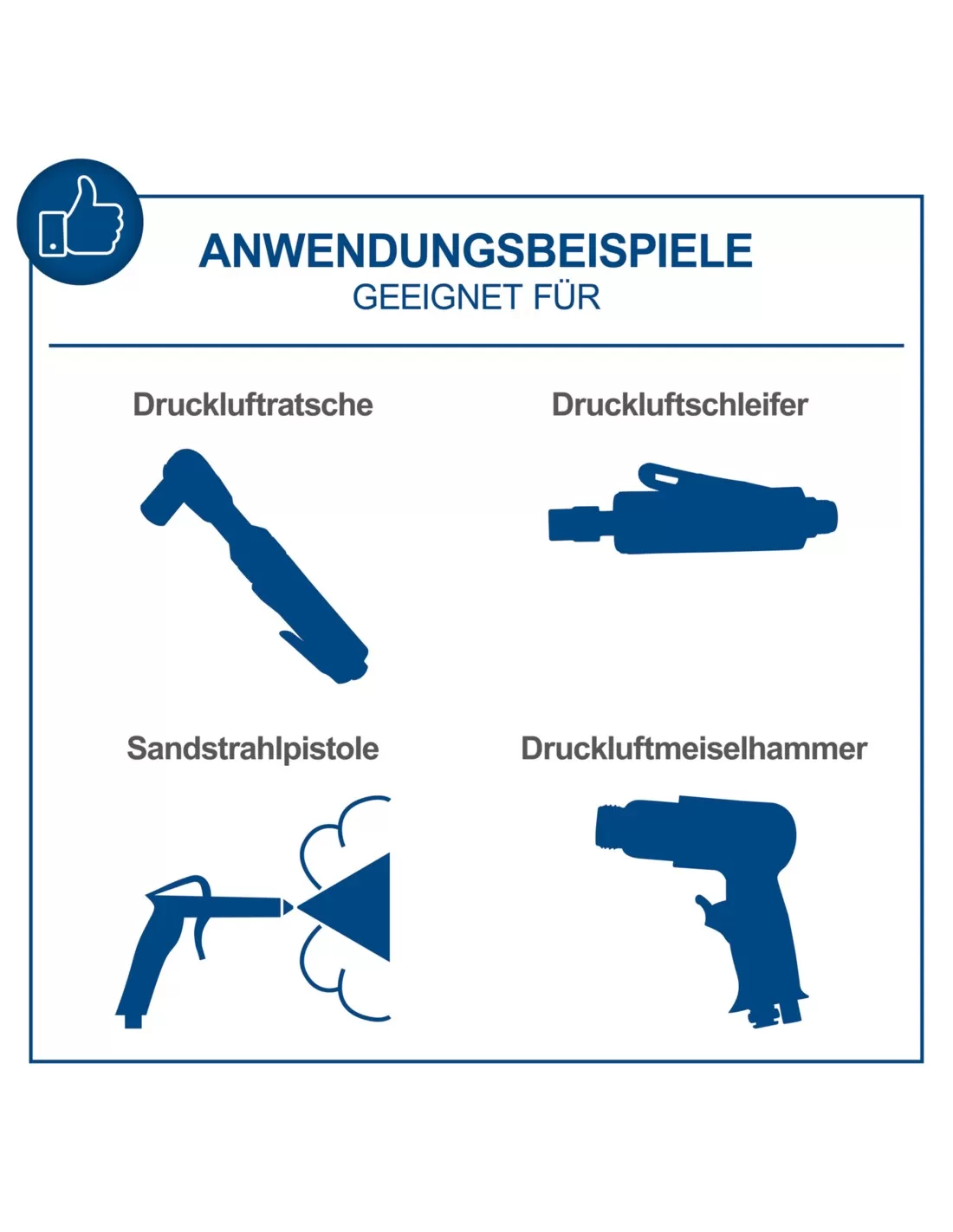 che possono funzionare con una portata d'aria fino a 371 l/min, ad esempio avvitatori a impulsi, levigatrici roto-orbitali o pistole per sabbiatura.