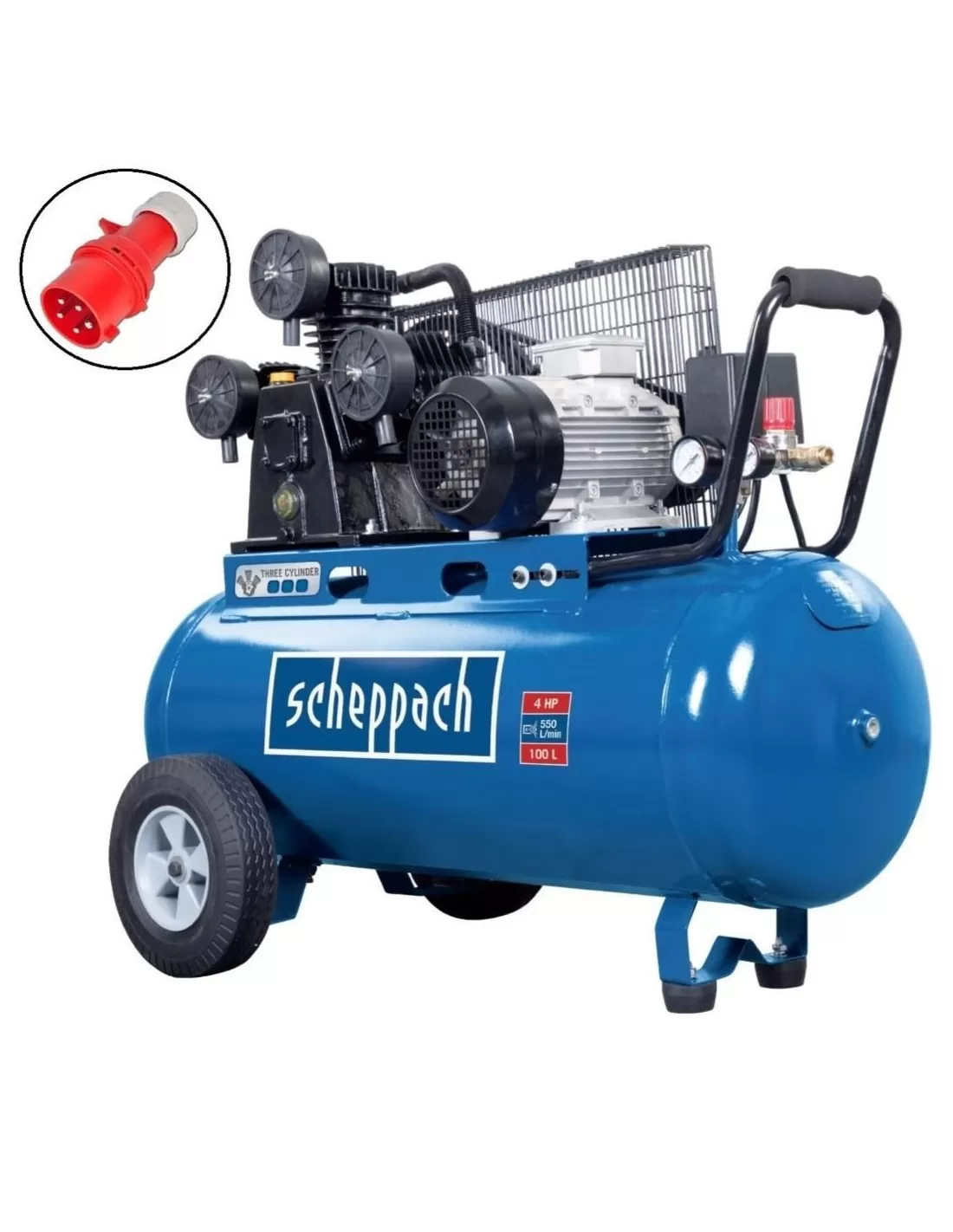 COMPRESSORE ARIA A CINGHIA 100LT 3 CILINDRI 4 CV 10 BAR SCHEPPACH HC550TC 400V