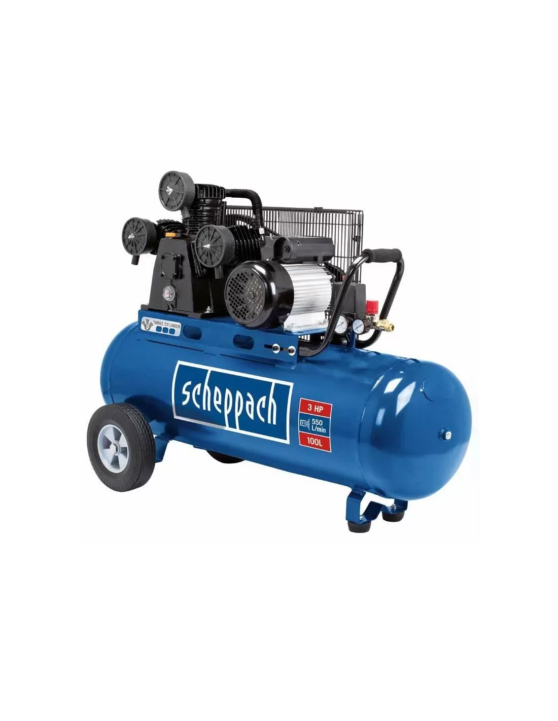 HC550TC di Scheppach è un nuovissimo compressore a tre cilindri con trasmissione a cinghia per affrontare le sfide più impegnative.
