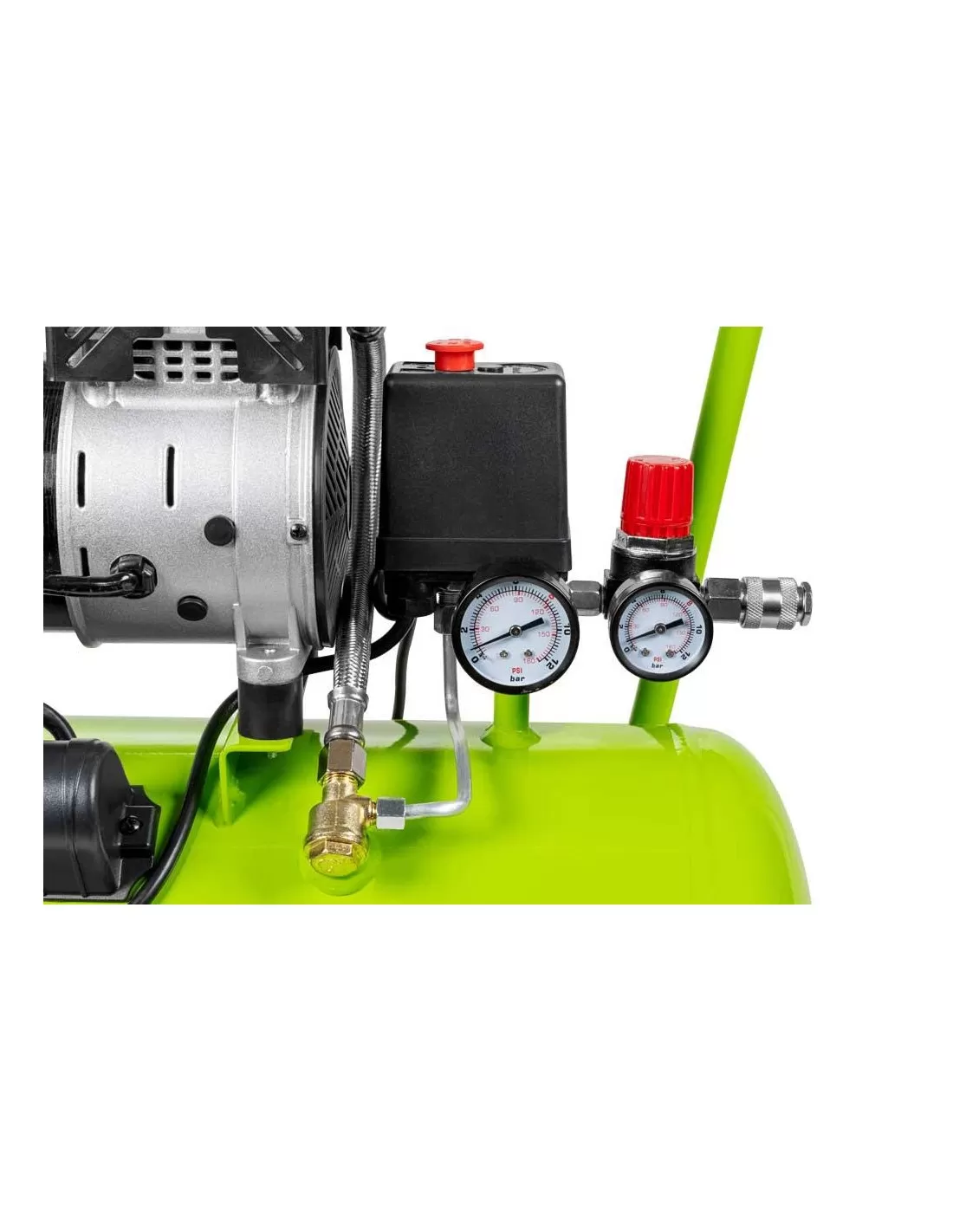 Il compressore ZIPPER ZI-COM24SI della serie Silent è estremamente versatile. Le sue dimensioni compatte e la pressione di esercizio regolabile fino a 8 bar tramite riduttore di pressione, il volume del serbatoio da 24 litri, la pompa oil-free e il bassissimo livello di rumorosità ne fanno uno strumento indispensabile nella vostra officina/garage, sia che abbiate bisogno di gonfiare pneumatici , utilizzare apparecchiature o semplicemente soffiare via qualcosa.