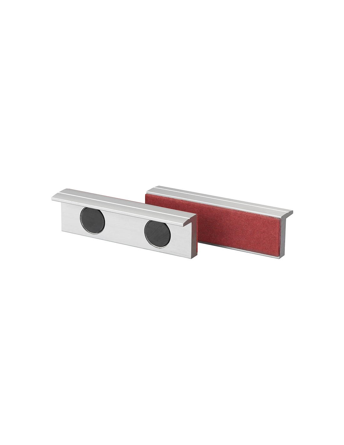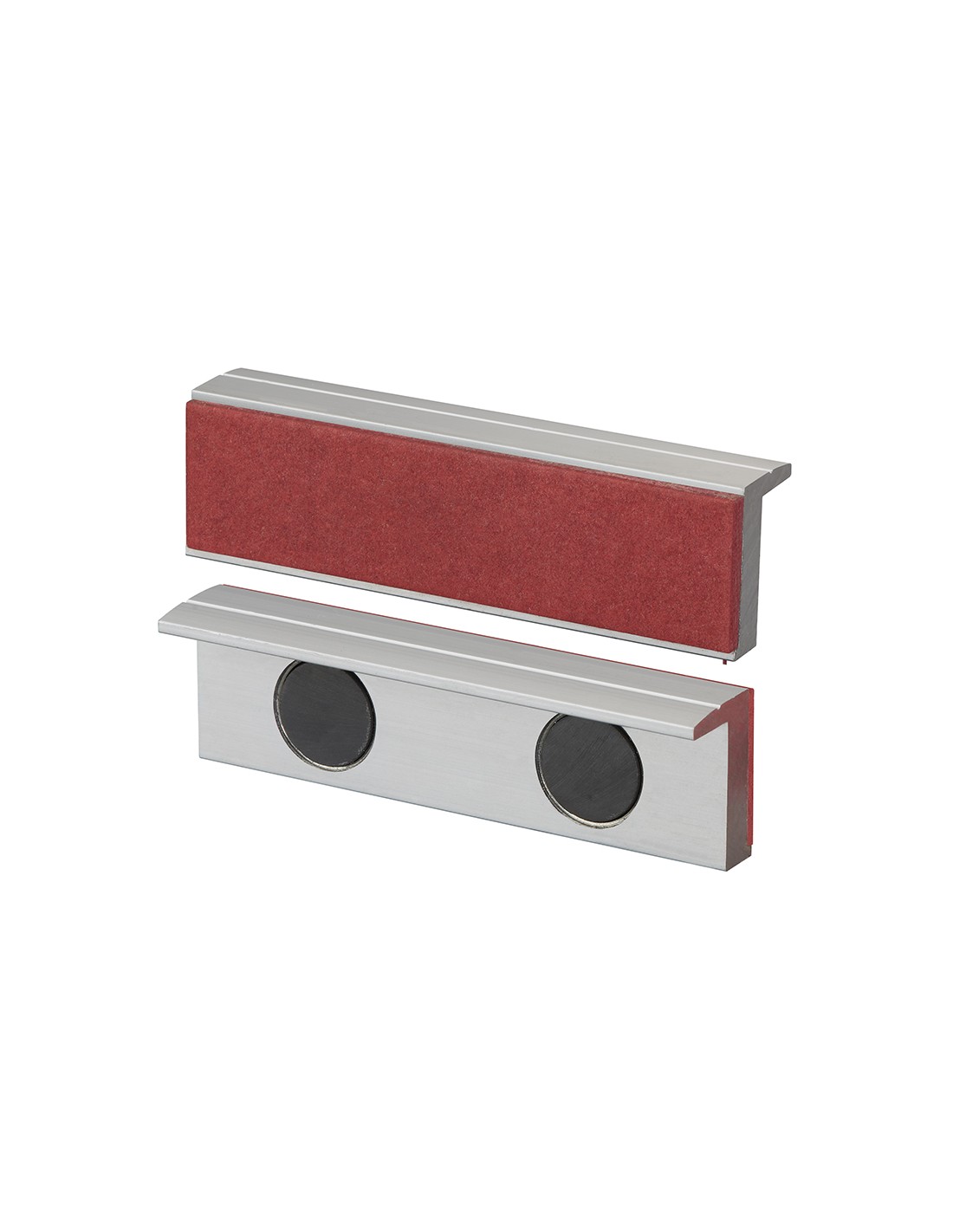 Con fibra resistente. 2 copriganasce in alluminio per morse con fibra resistente per rimanere ben salde alla superficie della morsa. Queste copriganasce hanno profilo rettangolare e parallelo e possono essere utilizzati su tutti i tipi di morsa