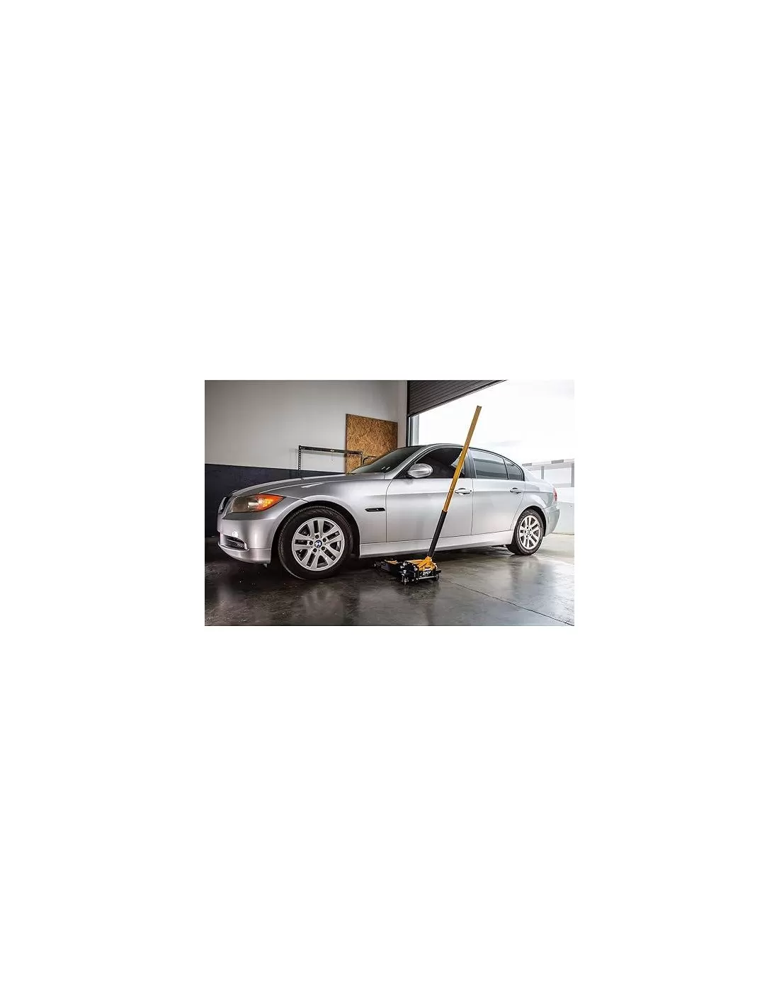 Costruito per resistere alle esigenze degli ambienti di lavoro più impegnativi, questo cric offre una capacità di sollevamento fino a 3 tonnellate. Grazie alla pompa di sollevamento rapido a doppio pistone, il braccio di sollevamento raggiunge l'altezza massima in sole 7 pompate della maniglia. Utilizza la pompa a pedale integrata per sollevare la sella con incrementi più piccoli e posizionarla con precisione sotto la tua auto o camion.