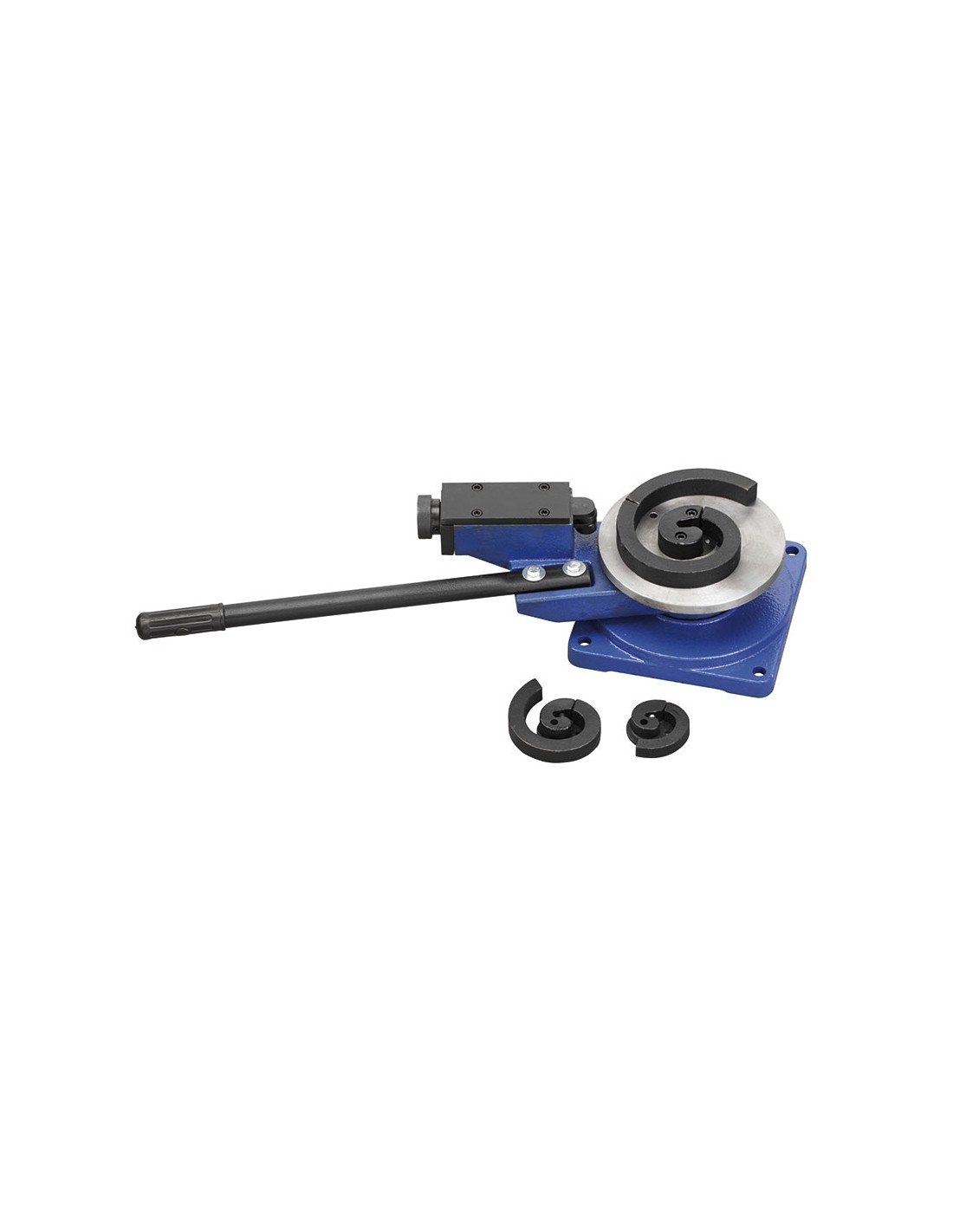 Per curvatura a freddo. con ferma pezzo ed impugnatura ergonomica La Curvaferri è una attrezzatura per uso industriale, progettata per effettuare la piegatura di piastre metalliche e tondini, entro lo spessore previsto. Essa consiste in un basamento di sostegno, fissabile su un banco, tramite viti; questo supporta la matrice e le attrezzature per la piegatura. Il movimento di piegatura viene effettuato manualmente tirando la leva fino al raggiungimento dell’angolazione voluta. Grazie alla verniciatura anti-graffio la curvaferri resiste ulteriormente al fenomeno di ossidazione. Lo strumento può essere fissato al banco di lavoro tramite bullonatura.