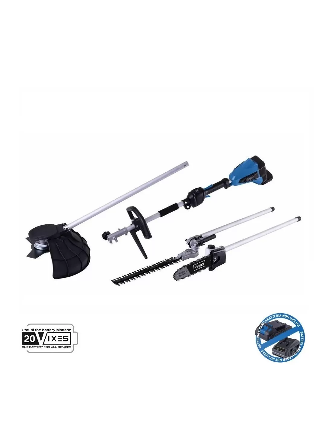 Come parte della serie Scheppach IXES da 20 V, tutte le batterie e i caricabatterie della serie possono essere combinati con il dispositivo multifunzione. Batteria e caricabatterie sono disponibili separatamente.