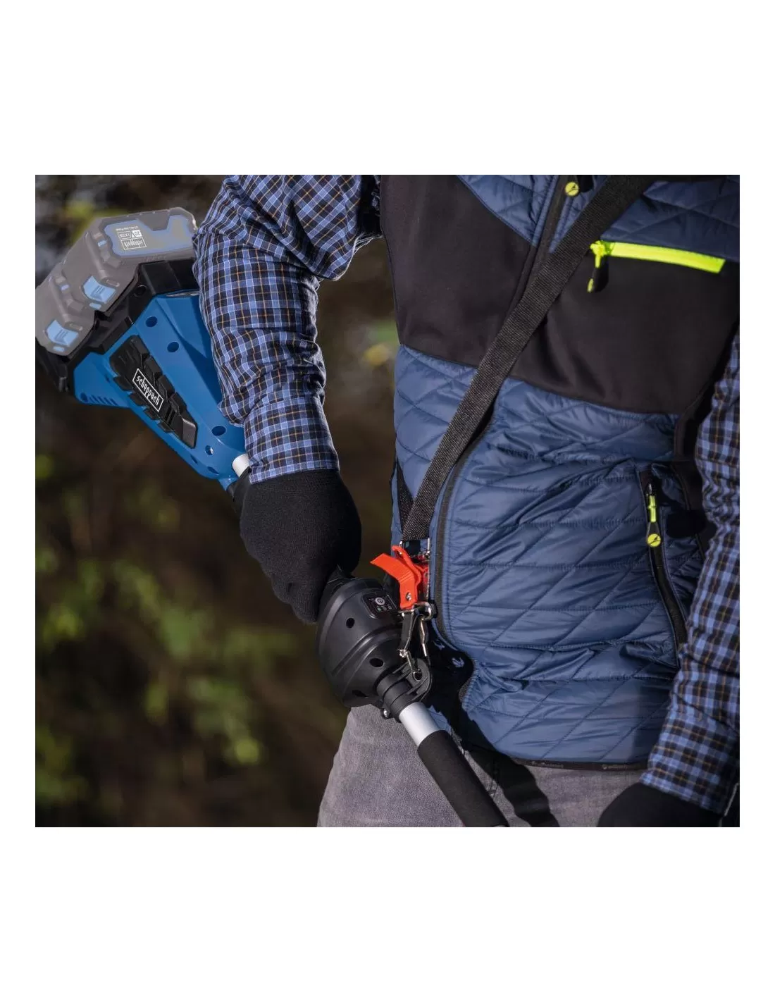 - La tracolla con dispositivo di sgancio rapido consente un lavoro lungo e senza fatica