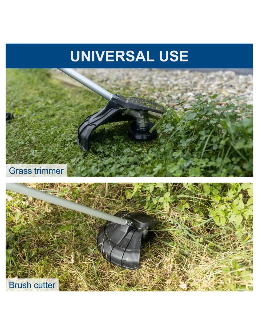 DECESPUGLIATORE A BATTERIA • Potente decespugliatore a batteria: tagliaerba e decespugliatore a filo in uno • Motore brushless esente da manutenzione, particolarmente efficiente, con maggiore autonomia e durata e bassa usura • Lavoro a batteria con la serie Scheppach IXES 20 Volt – tutte le batterie e i caricabatterie appartenenti a questa serie di sistemi possono essere combinati con il decespugliatore a batteria • Larghezza di taglio tagliaerba 330 mm / Larghezza di taglio decespugliatore 255 mm • Facile sostituzione dell'attrezzatura di taglio, grazie al blocco del mandrino - Decespugliatore a filo a 3 denti di alta qualità per un sottobosco particolarmente denso - La tecnologia antivibrante consente di lavorare in modo ergonomico con basse vibrazioni - 3 livelli di velocità per un perfetto adattamento alle condizioni locali - 4000 / 4750 / 5500 giri/min - Bobina a doppia linea con controllo touch e prolunga del filo da 1,6 mm (funzione Tap'n'Go) - Facile montaggio/smontaggio senza attrezzi per uno stoccaggio salvaspazio - L'impugnatura regolabile della bicicletta con azionamento a due mani e la superficie antiscivolo consente un'ergonomia, funzionamento prolungato.