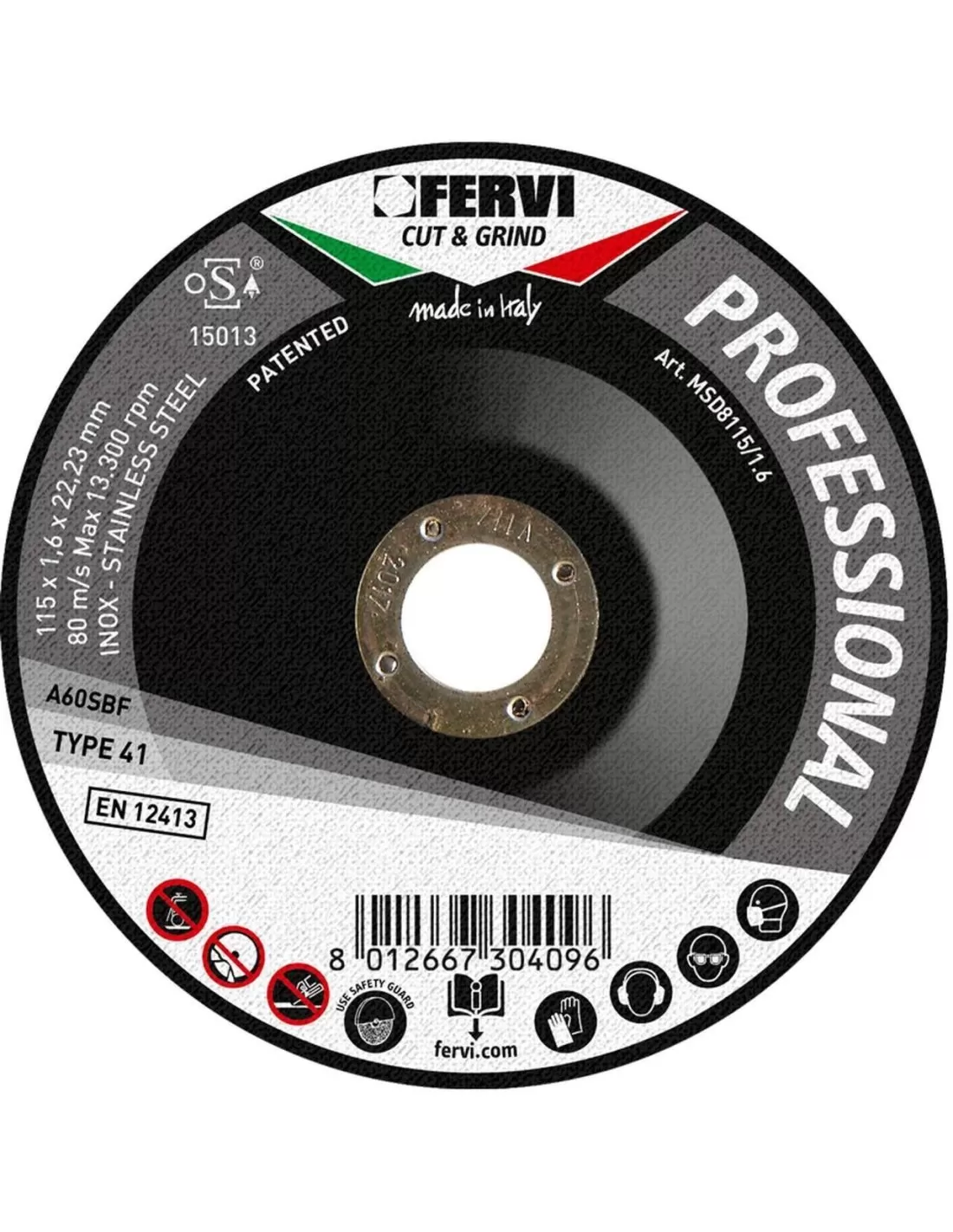 DISCO DA SBAVO PER FERRO E METALLO Ø115x6,5x22 MM AQ PROFESSIONAL FERVI MSD8115/6.5