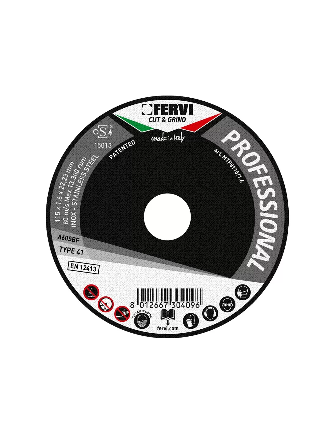 DISCO DA TAGLIO PER FERRO E METALLO Ø115x1,6x22 MM A60S PROFESSIONAL FERVI MTP8115/1.6