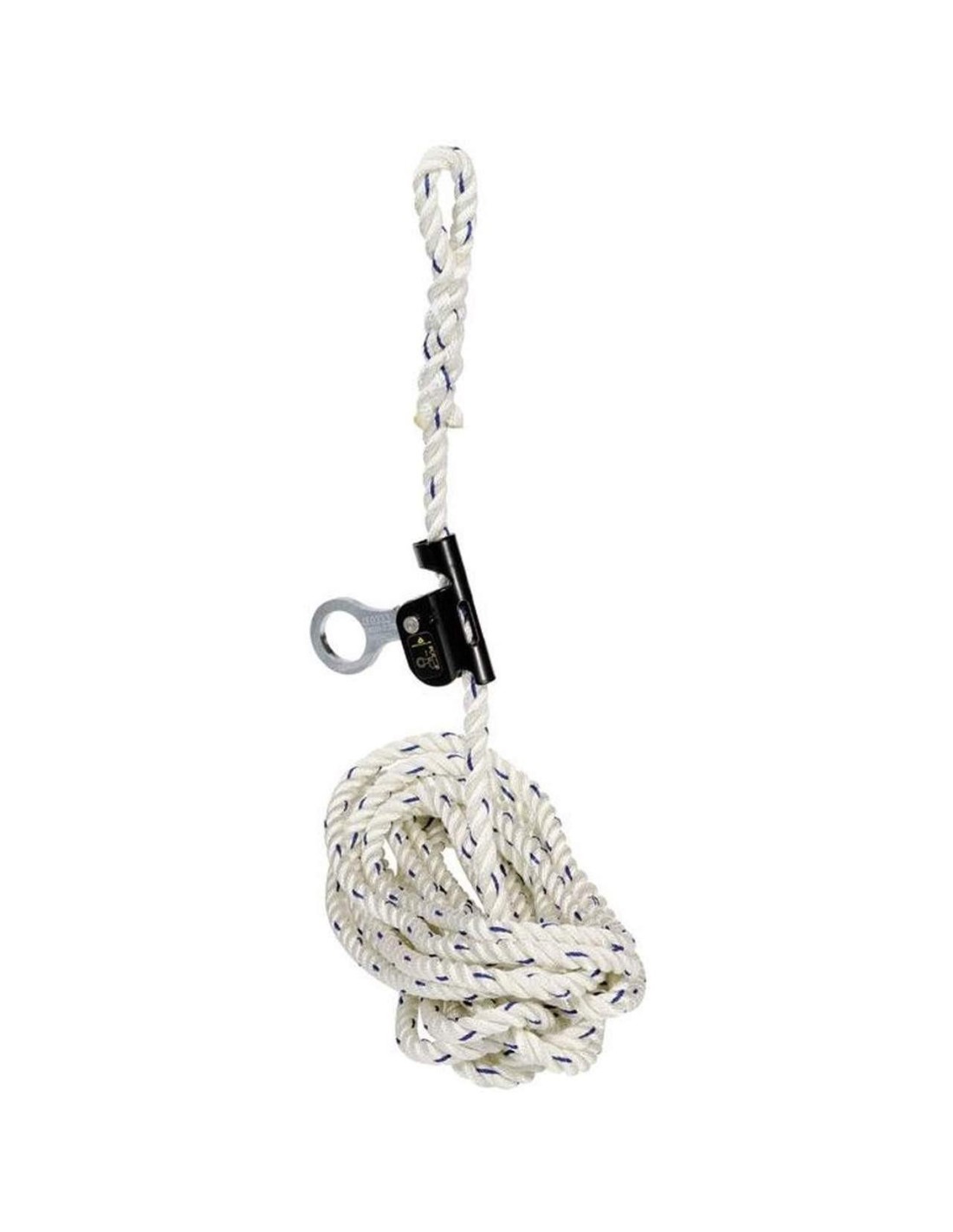 Anticaduta scorrevole di tipo non apribile conindicatore di caduta su supporto di fissaggio con corda trefolata Ø 12 mm. Indicatore di usura. 1 fibbia cucita nell'estremità alta. Lunghezza : 10 m.