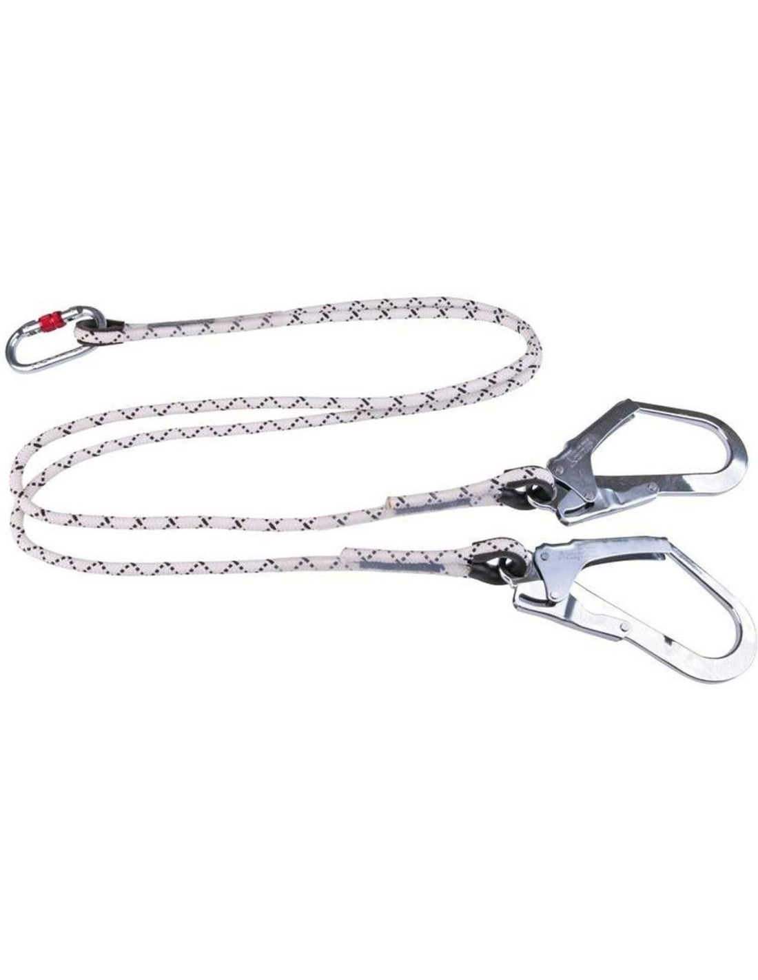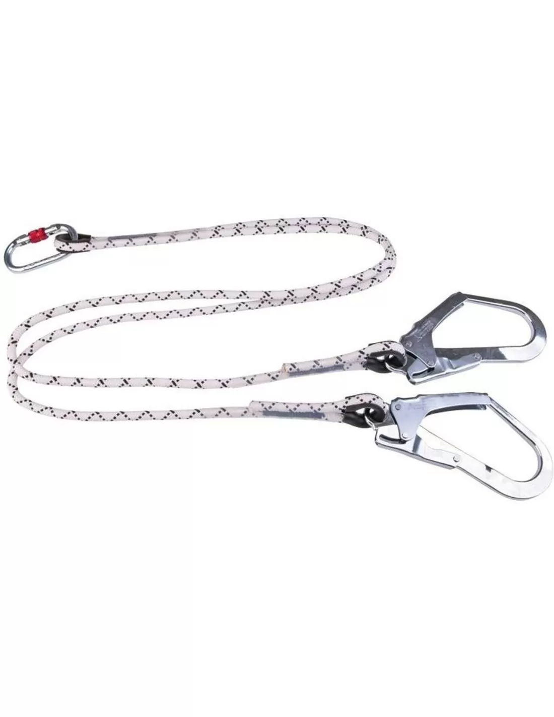 Doppia fune con corda intrecciata Ø 10,5 mm. Terminazione con 3 terminali capocorda a treccia. Lunghezza : 1,50 m.