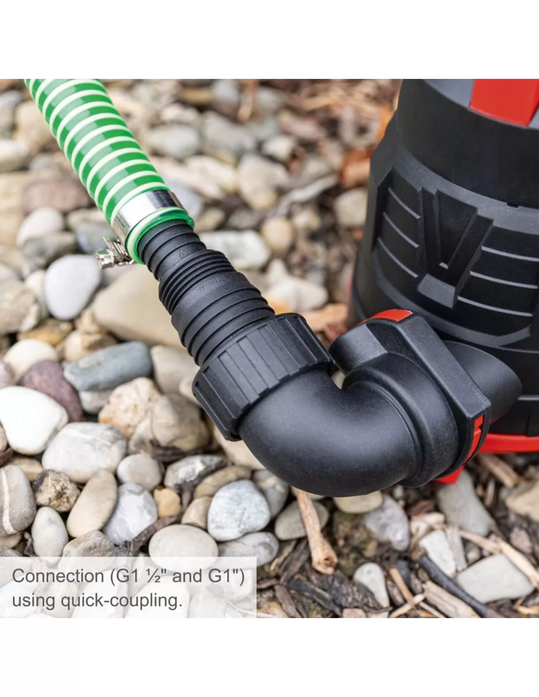 COMBINAZIONE PER ACQUE REFLUE PUM 400 W • Potente pompa combinata per acque reflue per l'irrigazione del giardino o lo scarico della piscina o acqua del laghetto • Adatto per acque chiare e reflue • Capacità di pompaggio particolarmente elevata di 9.000 l/h - per rendere anche grandi quantità di acqua gestibile • Corpo pompa robusto e resistente agli urti con motore ad alte prestazioni da 400 W • Altezza massima di scarico 6 m, profondità massima di immersione 7 m • L'interruttore a galleggiante si spegne automaticamente quando il livello dell'acqua è troppo basso, Evitare il funzionamento a secco. Può anche essere fissato in modo sicuro per il funzionamento continuo • Le resistenti porte di aspirazione e pressione G1" e G 1 1/2" consentono un facile collegamento di tubi da giardino convenzionali • Facile da collegare, grazie al pratico attacco rapido • Pressione pompa 0,6 bar • La protezione da sovraccarico impedisce il surriscaldamento • La pratica maniglia consente l'uso mobile • Granulometria massima 30 mm • Temperatura massima dell'acqua 35 °C